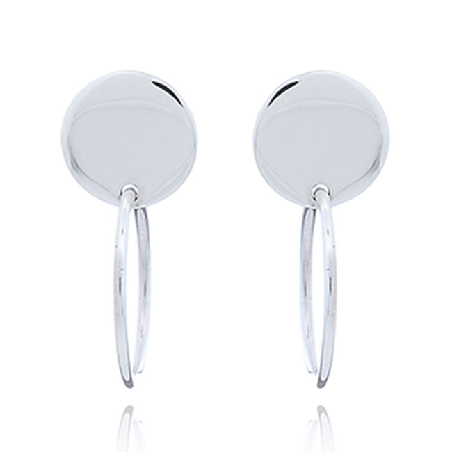 Flat Disc Stud Hoop Silver Earrings