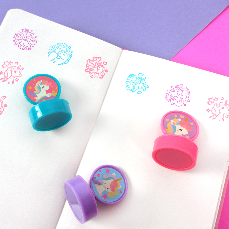These cute little self-inking stamps are easy to hold with a cute flat decorative handle! They are perfect for retail sale or even for promotions! The sticker and the stamp rubbers may be customized in your designs. Ink colors are vibrant and stamp images are clear! Stamp ink is non-toxic and safe for children. We may package these stamps bulk, in display boxes, in blistercards or however you like!