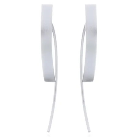 Flat Long Curve Sterling Silver Drop Earrings