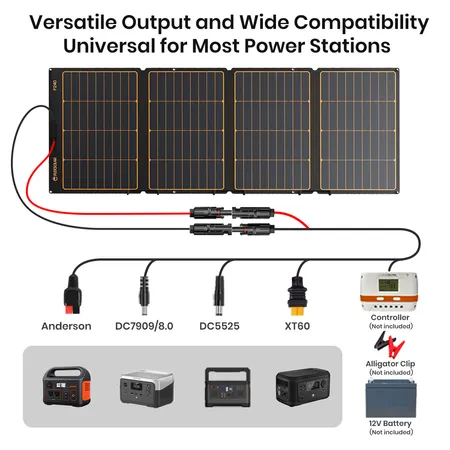 Durable, waterproof, and dustproof to an IP65 rating to endure most weather conditions. Compatible with all kinds of solar-powered batteries, most portable power stations, or solar generators. Gear up to explore outdoors with solar power.