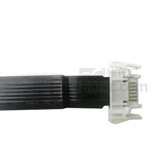 Displayed is a flexible flat cable folded with a white connector. It is compliant with various standards and is also halogen free. This high quality FFC is widely adopted in the electronic industry.