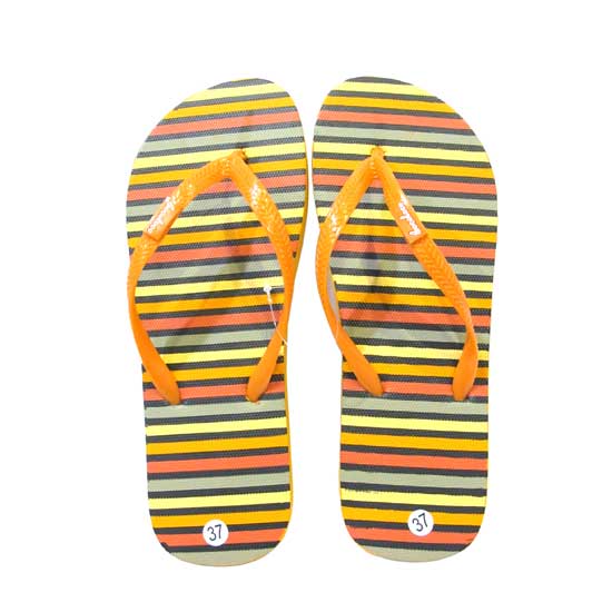 This pair of PE flip-flops features a simple yet fashionable design. This pair of flip-flops comes with striped patterns on the insole for an eye-catching look. These flip-flops are must-have accessories during the hot summer.