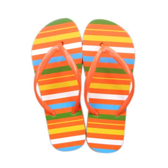 This pair of flip-flop slippers made of quality plastic. Each sole is printed in rainbow colors for an eye-catching touch. This pair of fashionable flip-flops is a great accessory for your beachwear or casual outfits.