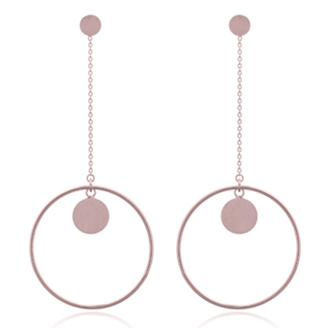 Flipping Disc in Circle Chain Rose Gold Stud Earrings