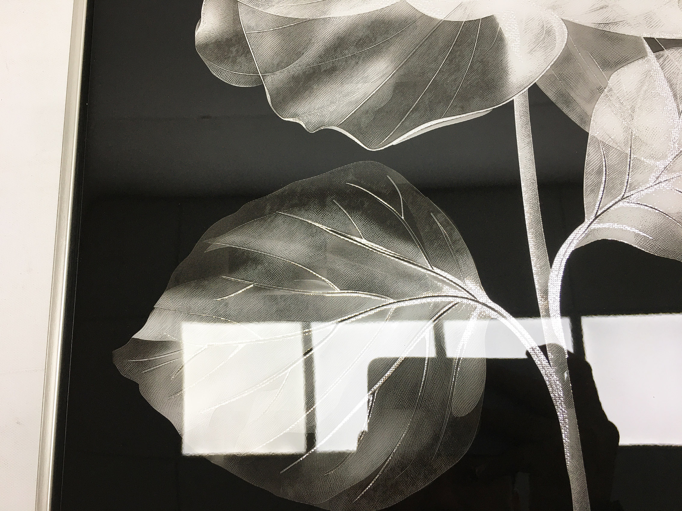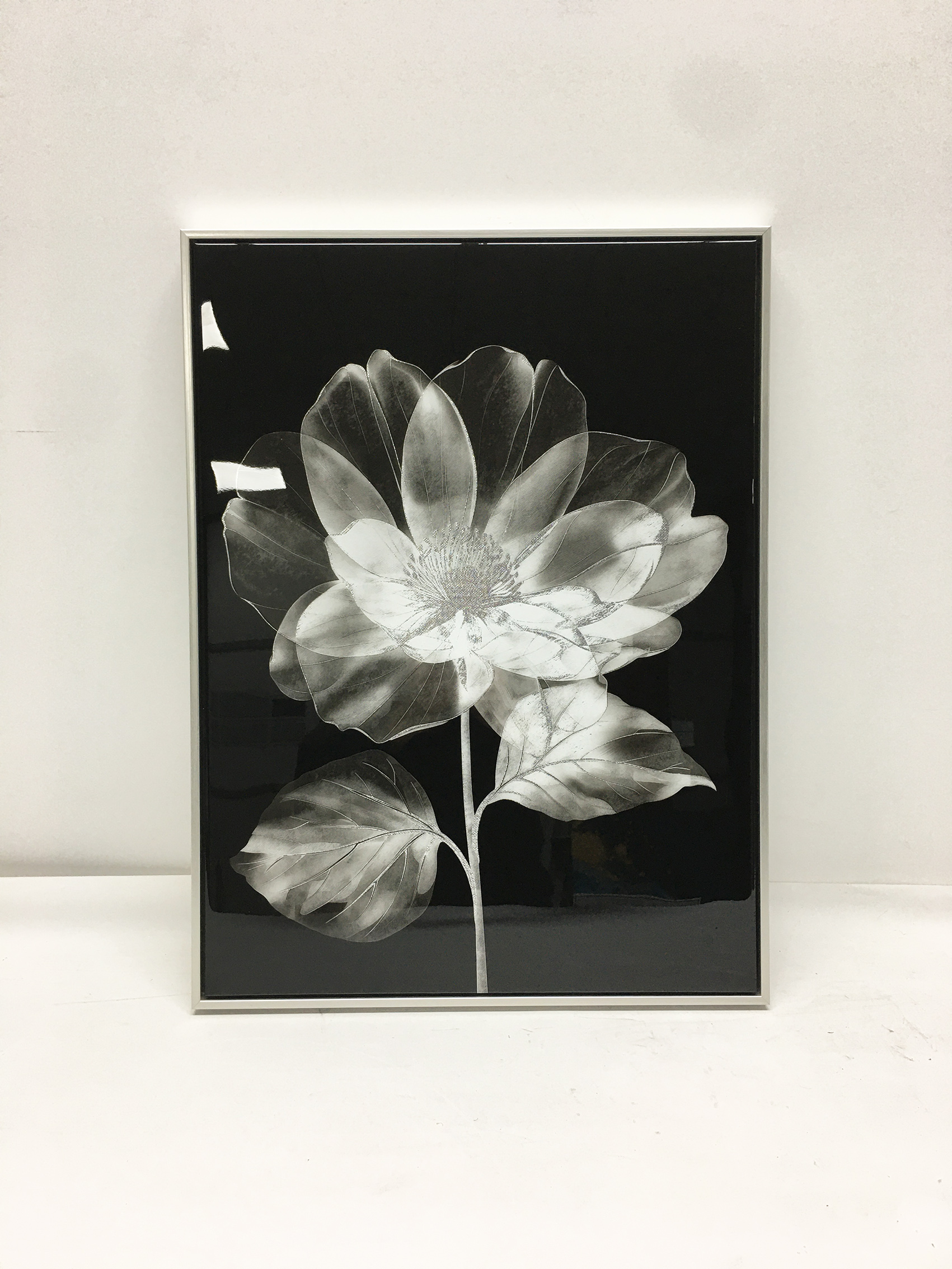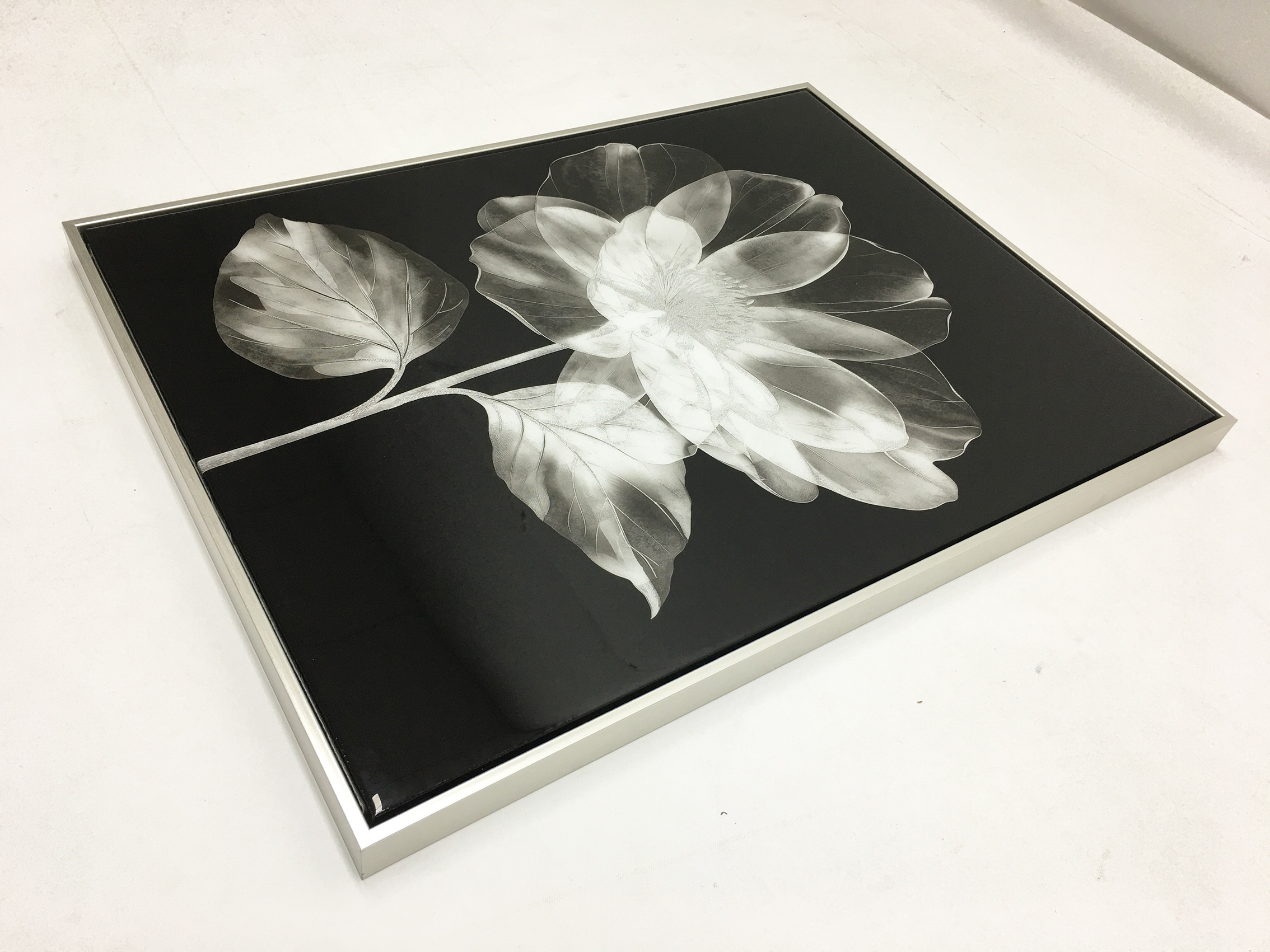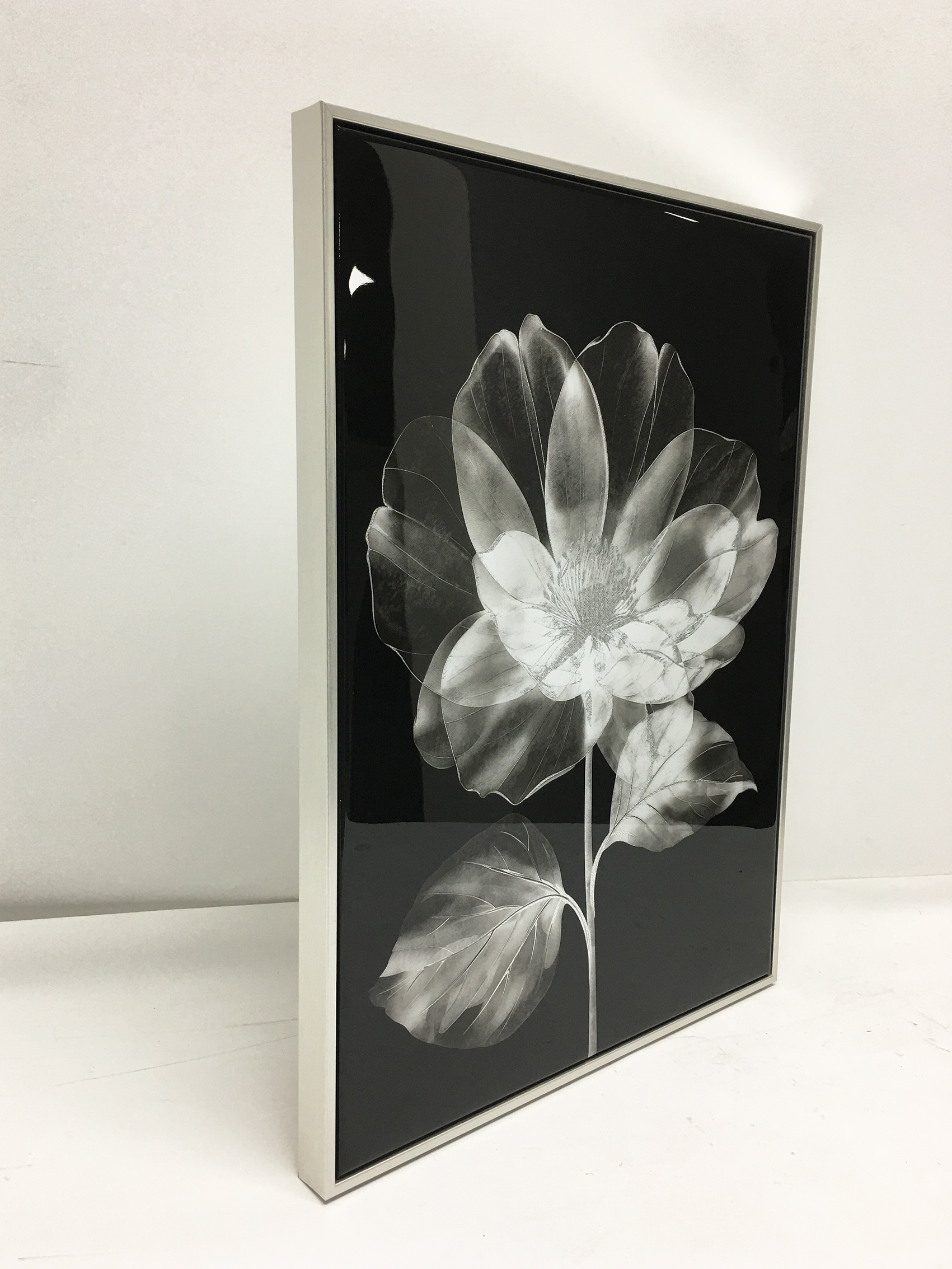 High-gloss lacquer embellished floater framed canvas art — beautifully decorative.