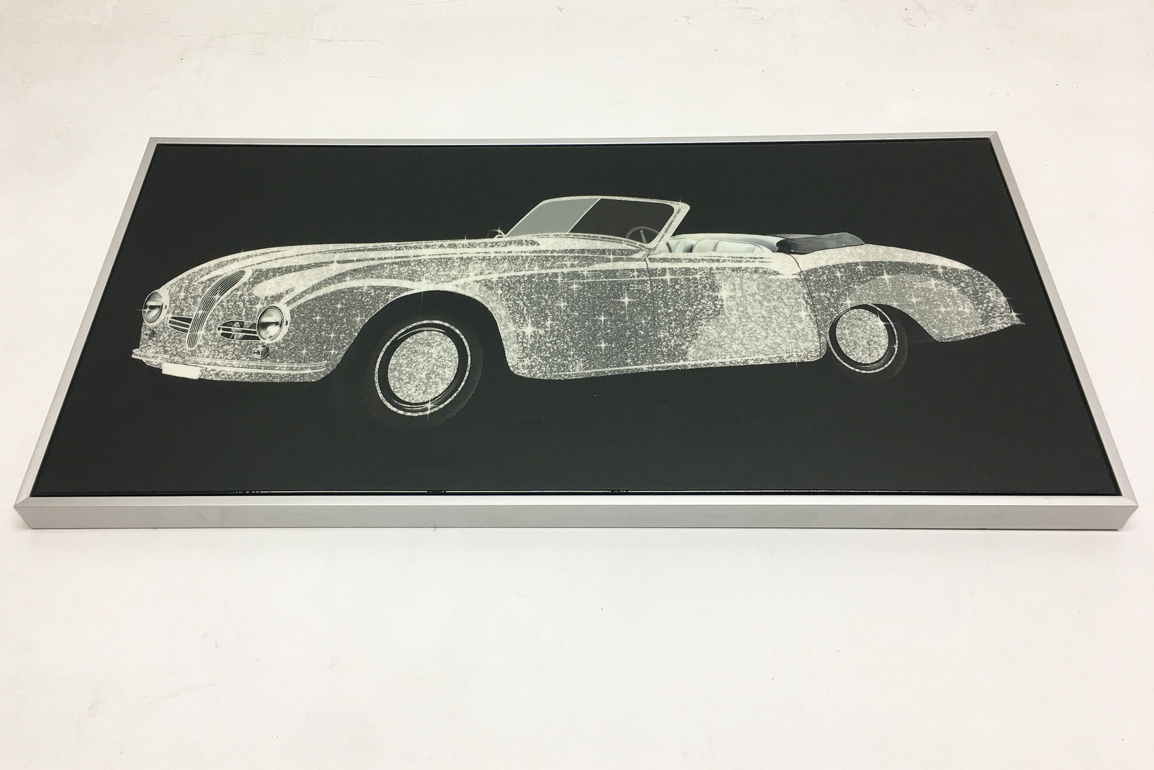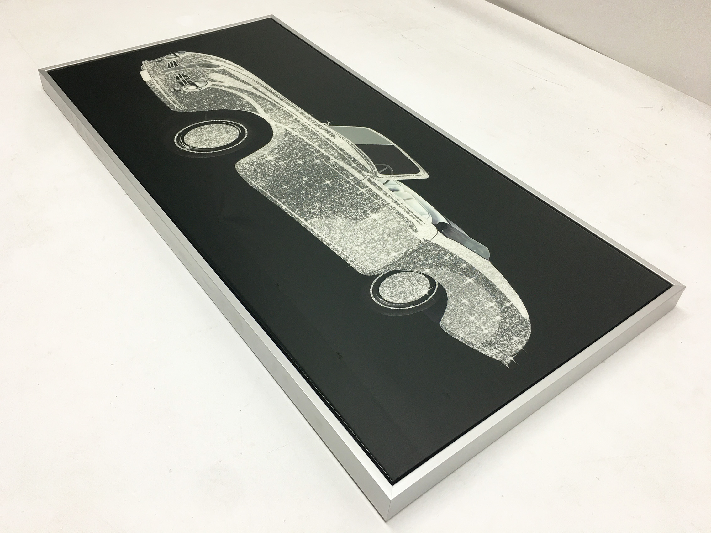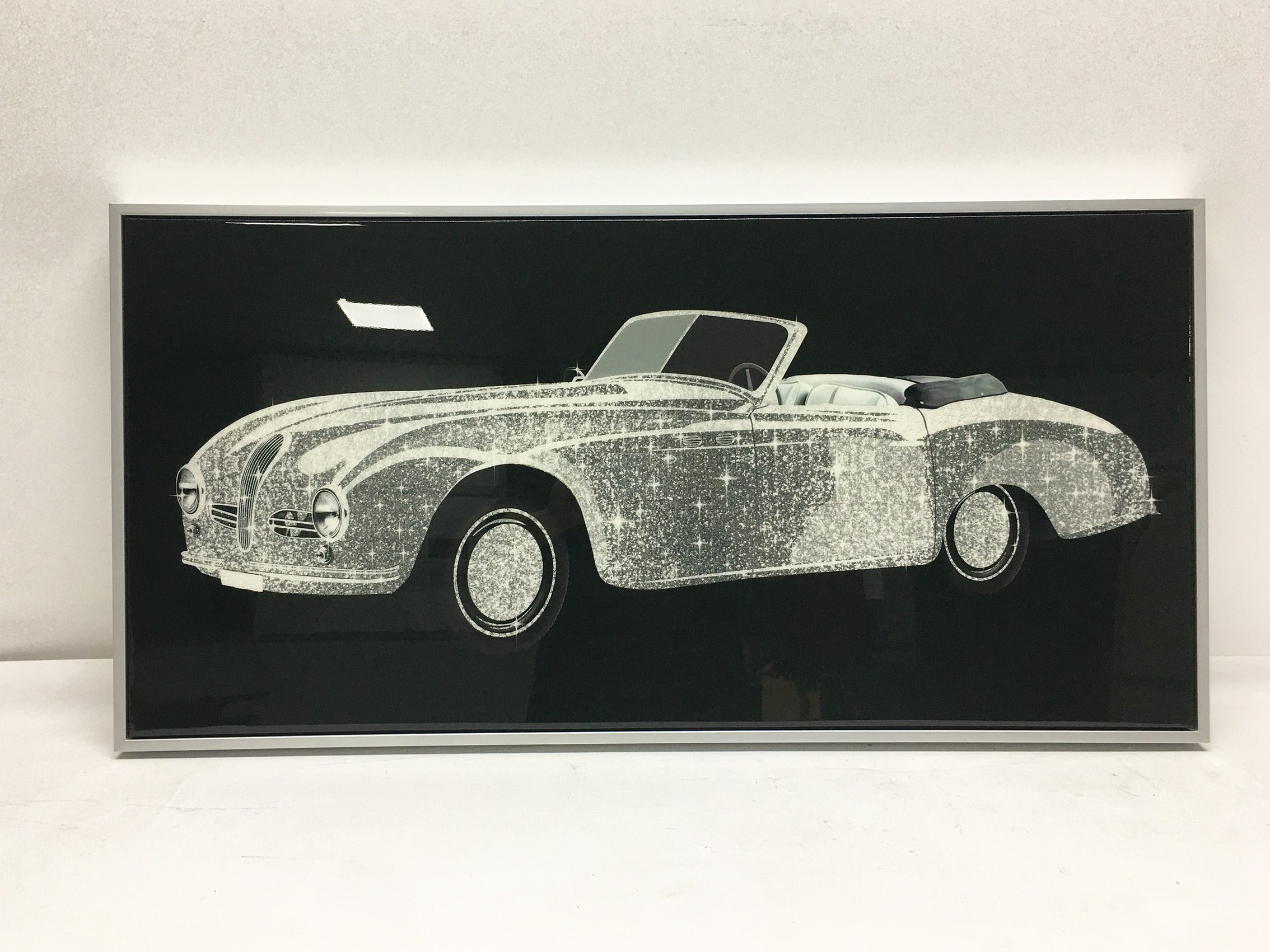 High-gloss lacquer & Glitter embellished floater framed canvas art-Vintage Car