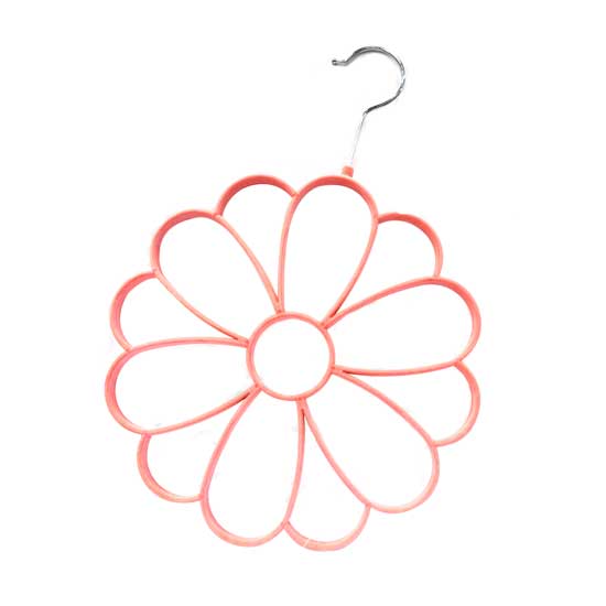 This unique garment hanger features a delicate flower design. The ABS hanger is wrapped with flocked fabric for a soft touch. The versatile hanger allows an easy way for you to organize your scarves, shawls and other accessories.