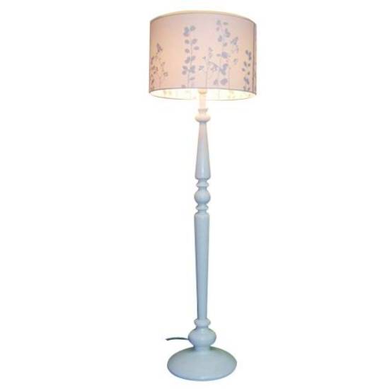 This elegant floor lamp features a classic white cylinder-shape lampshade with floral patterns. It has a matching geometrically shaped stand in white color. Highlight your room with this stylish floor lamp.