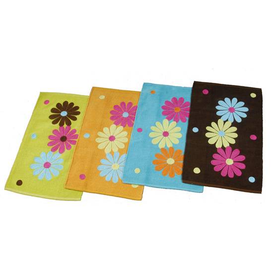 The featured items are floor mats in various colours and design. Made of cotton and chenille fabric, designed with flower pattern and embroidery. Being both decorative and practical, ideal for everyday household use.