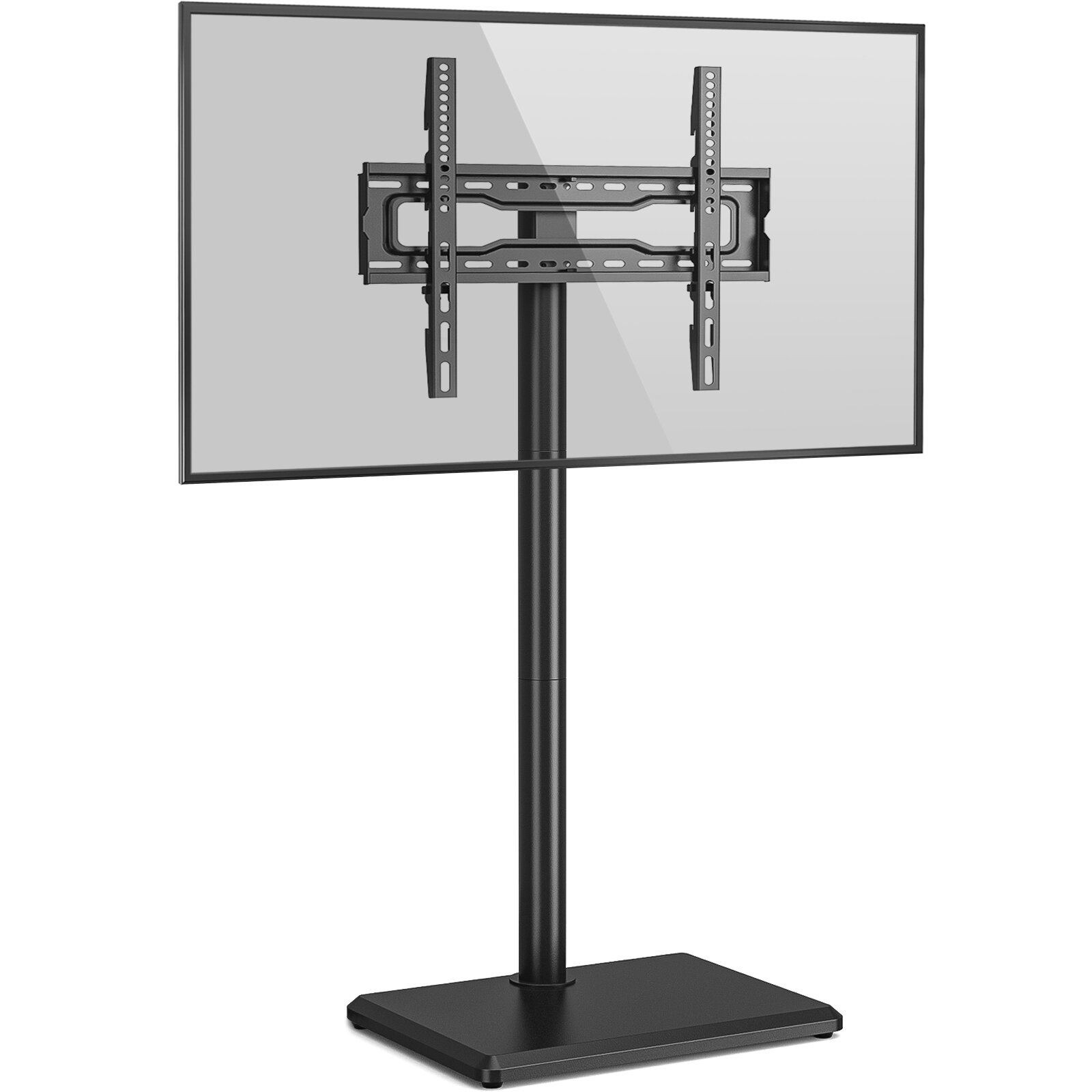 [ADJUSTABLE HEIGHT AND SWIVEL BRACKET]–This swivel tv stand has 2 modes of height adjustment: 3 levels in mounting bracket and 8 levels in metal pole support, total 24 levels to adjust height from 50 inch to 56 inch. In addition, you can swivel TV 60 degrees in Left or Right direction, allowing you always get the best view no matter where you are.