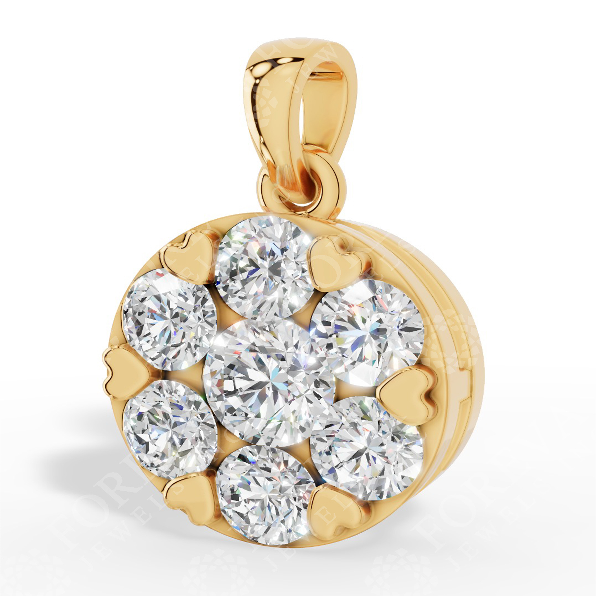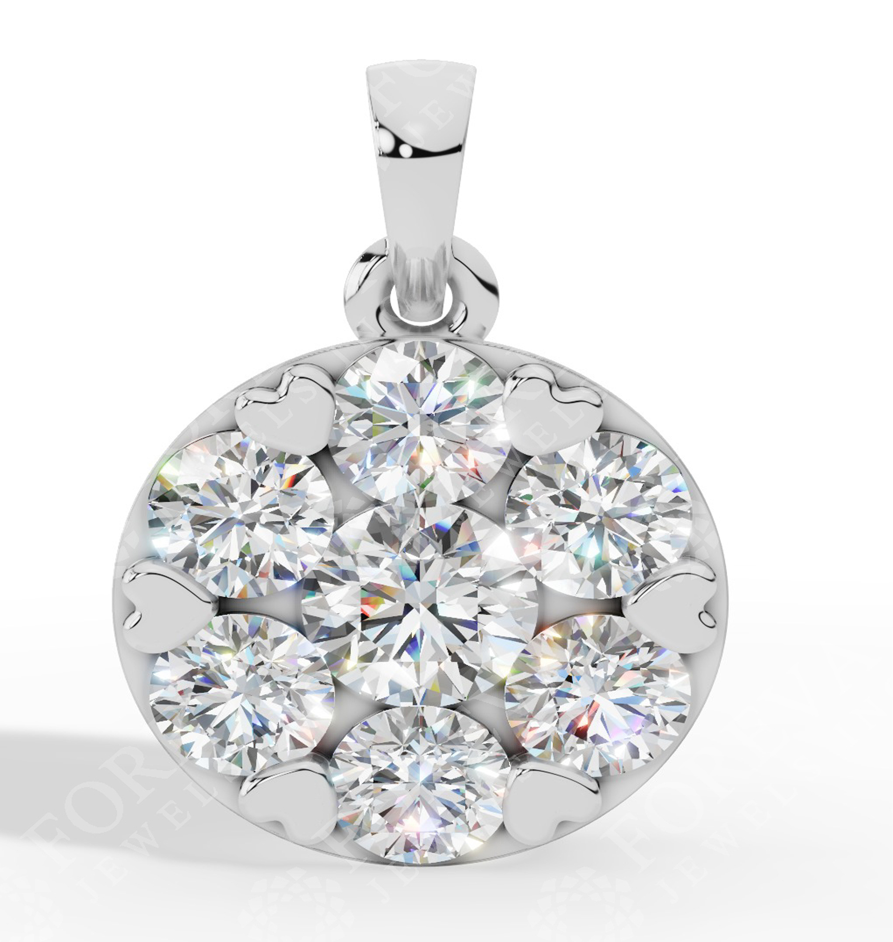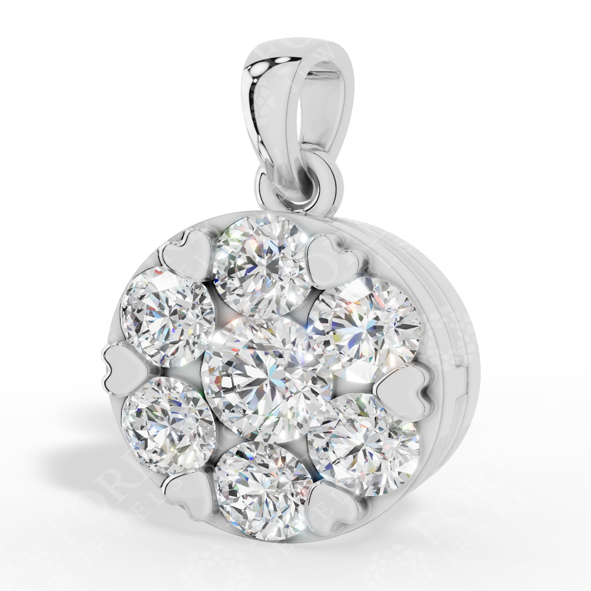Heart Prong Pendant Featuring Brilliant Round Cut Cluster Setting Lab Grown Diamond