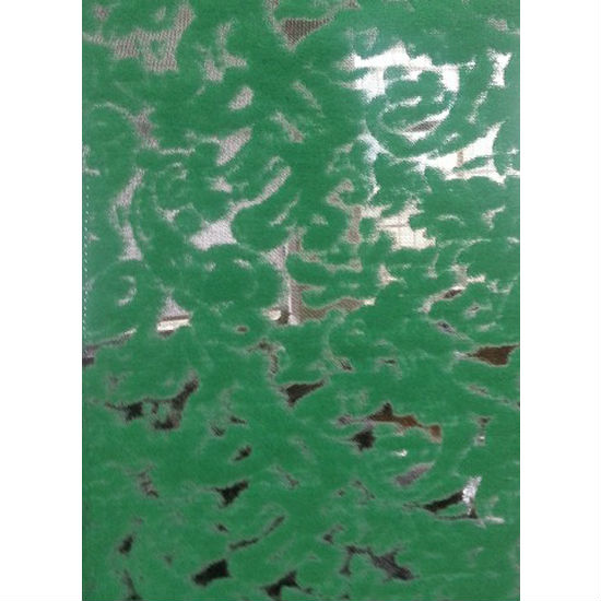 • A sheer piece of fabric intricately embellished with vibrant green floral motifs.