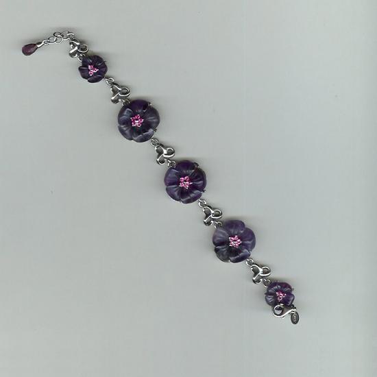 Adorn your wrist with a feminine flair with this finely crafted bracelet. The amethyst flower-shaped charms contrast beautifully with the silver-tone chain. This bracelet is completed with a lobster clasp fastening and an extender chain for a tailored fit.
