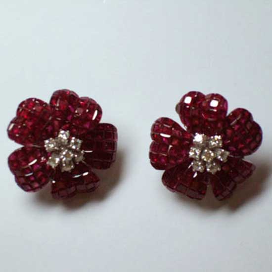 This pair of earrings blossoms in captivating red. The earrings are crafted with diamonds and red ruby for a touch of exquisiteness. The earrings are nice adornments for your flawless make-up.
