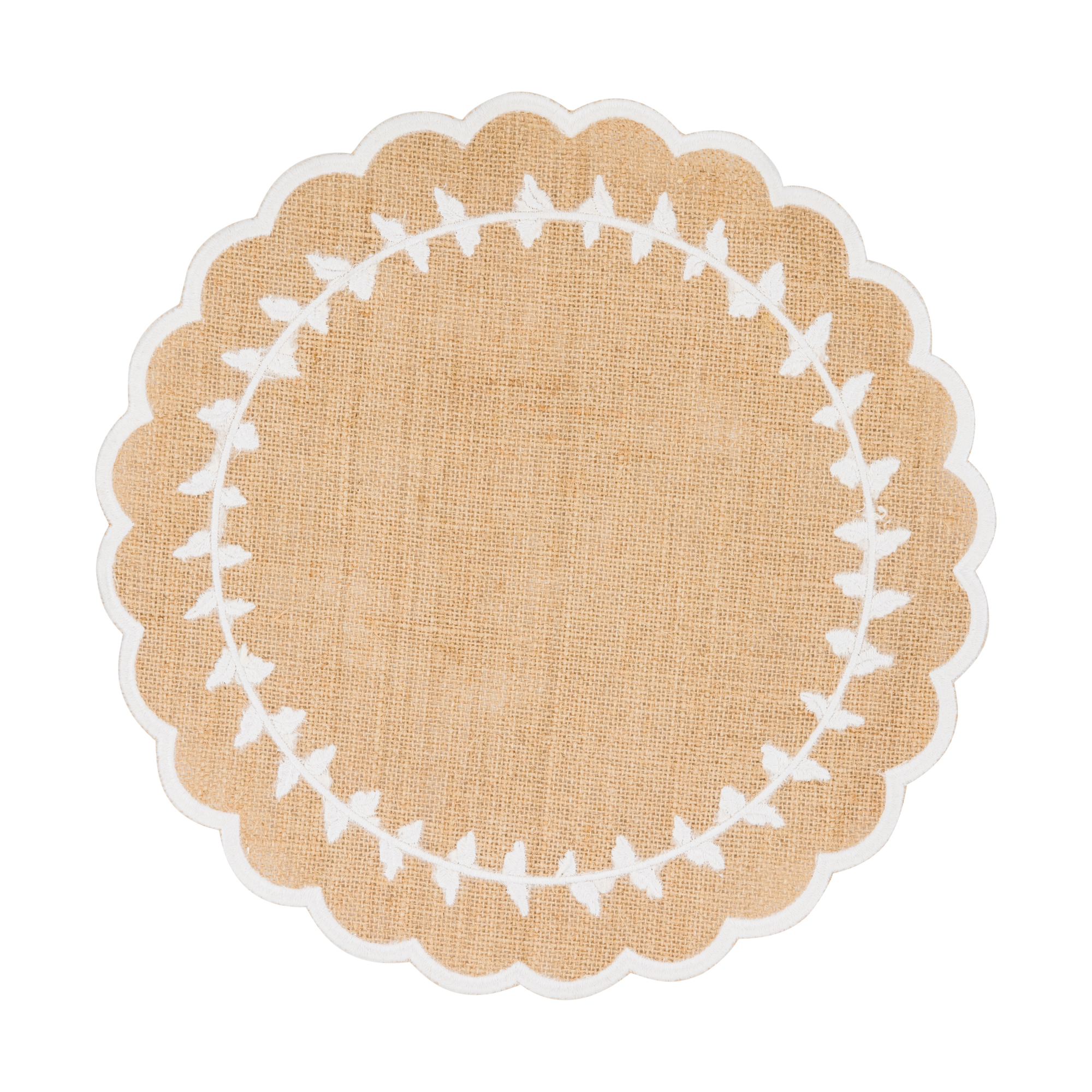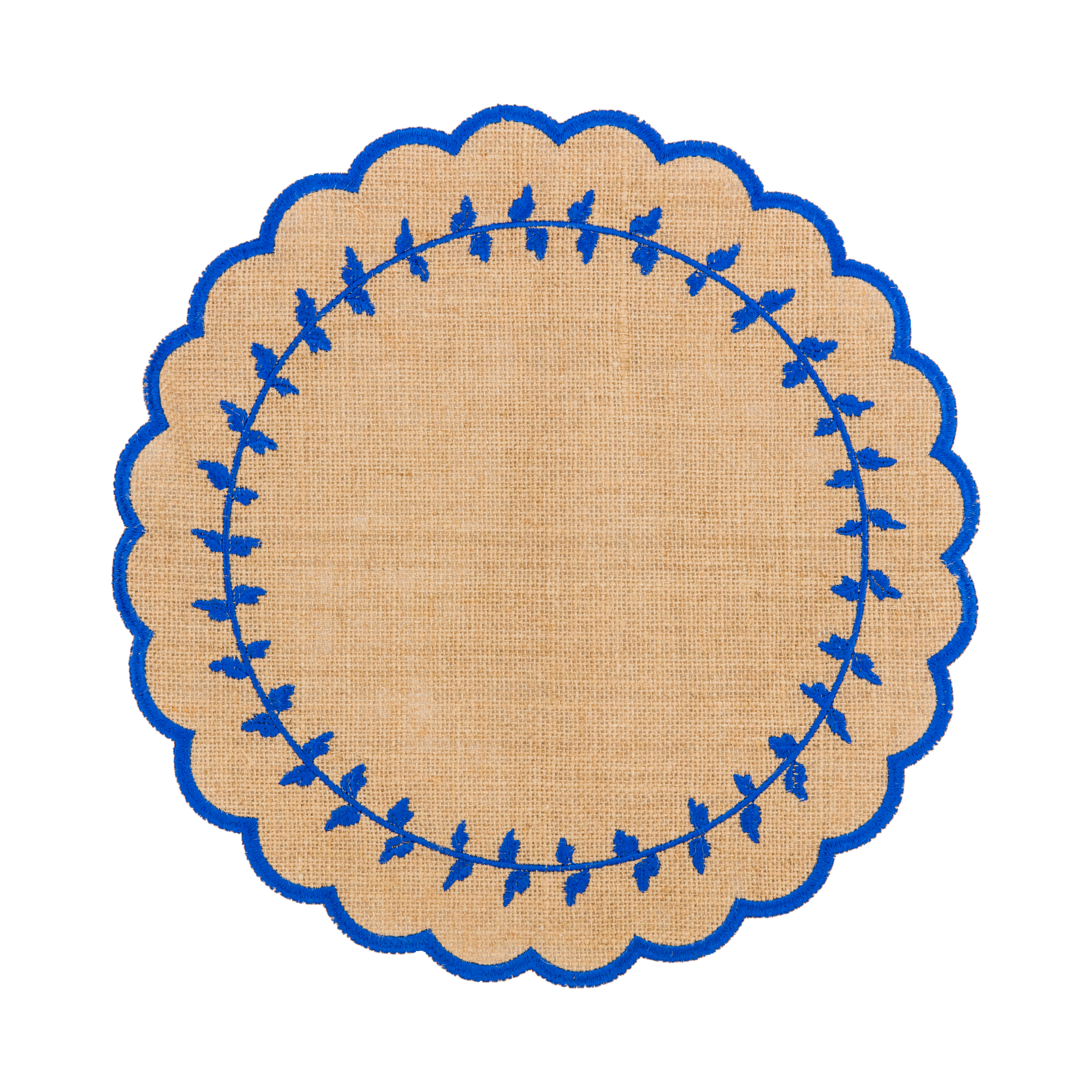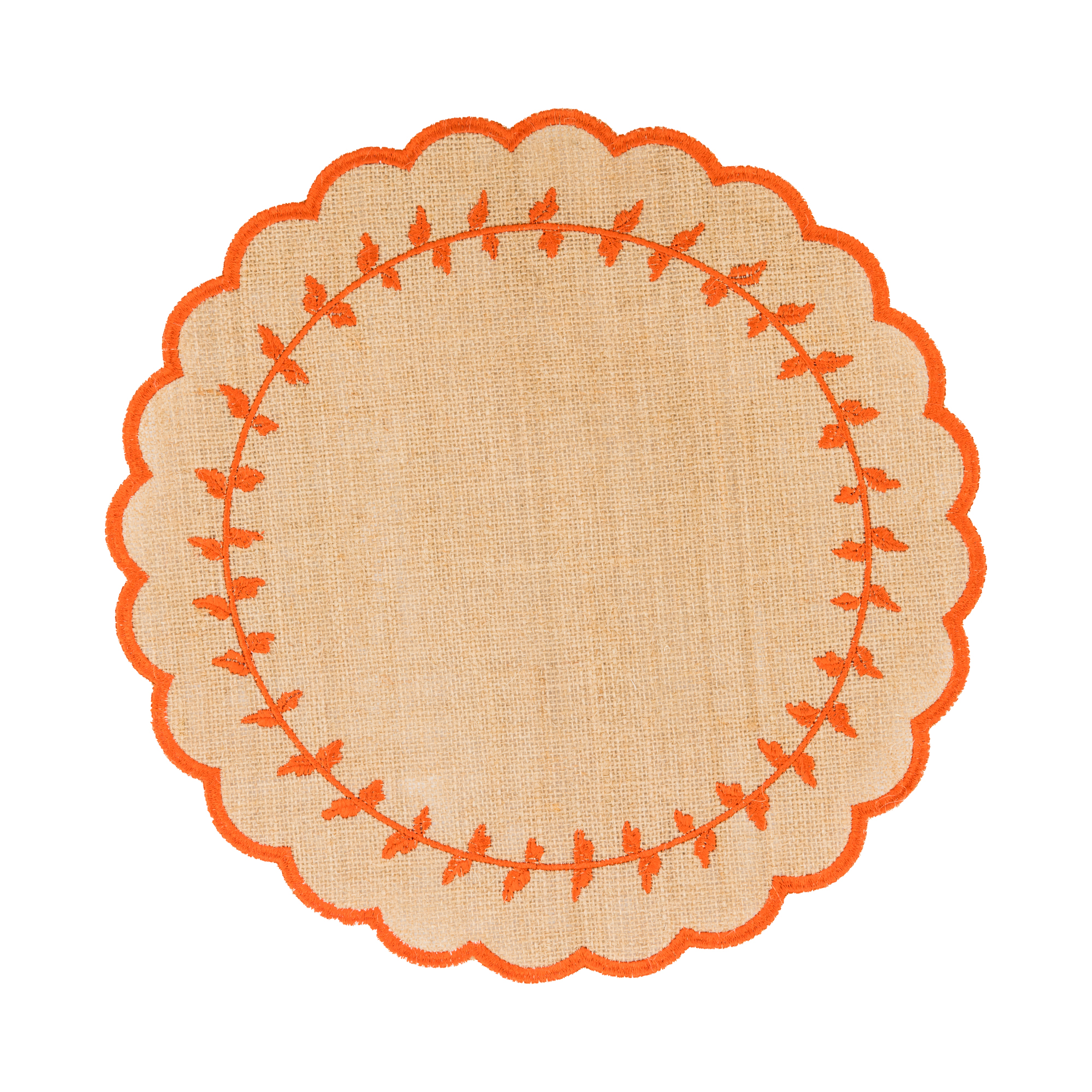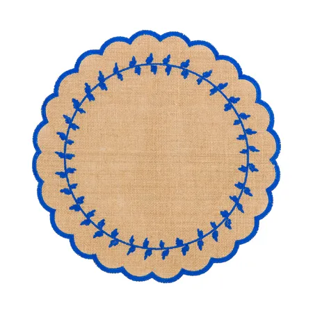 These rustic chic jute flower placemats are decorated with exquisite green embroidery. Individually hand-cut, sewn, and embroidered, with every detail handmade to perfection, they will make a statement in every table setting.