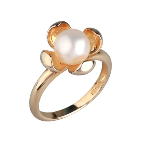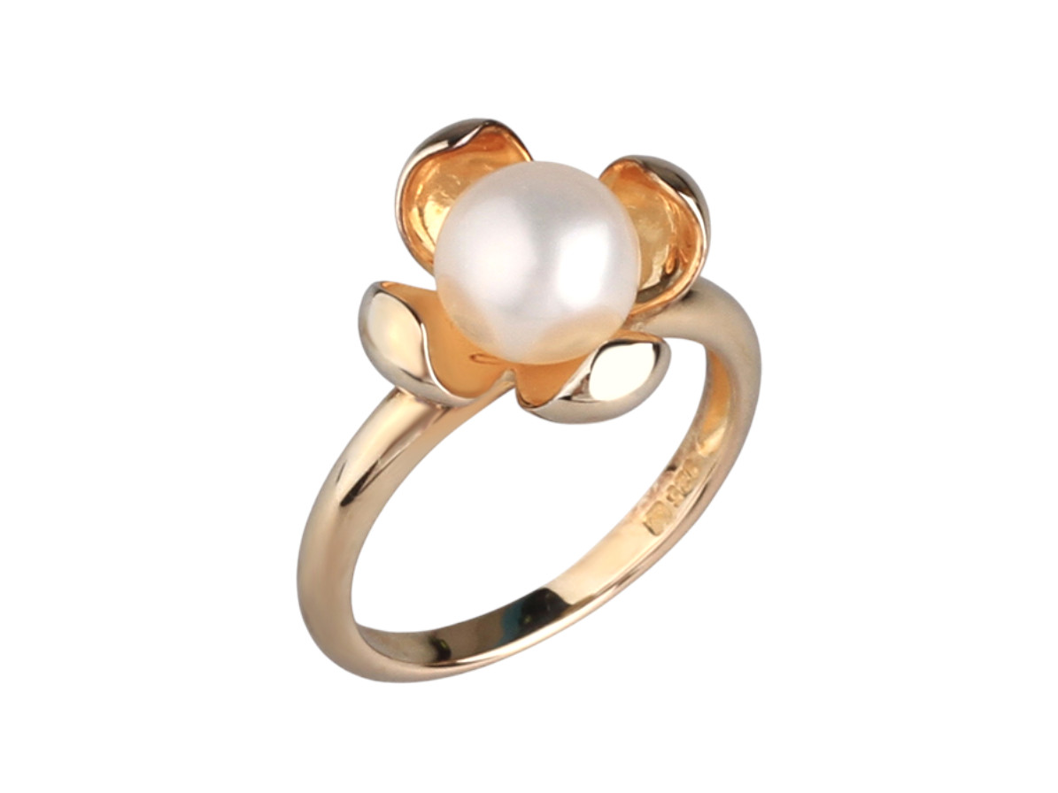 STERLING SILVER RING WITH 7.5-8MM FRESHWATER BUTTON PEARL, YELLOW GOLD COLOR PLATED