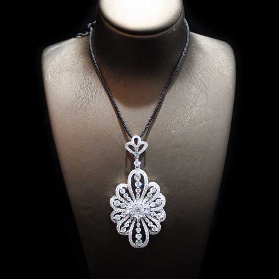 This stunning flower-shaped pendant features twinkling round-cut diamonds set in the 18K white gold. The pendant is meticulously crafted with great attention to details. It makes a wonderful addition to any ladies' jewelry collection.