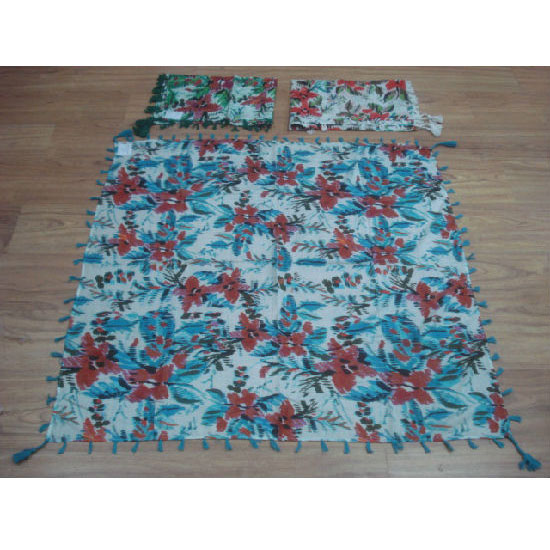 This is a flower printed scarf in a chic appearance available in different styles for your wide selections. The well-matched blue tassels trim on the edge accent this stylish scarf elegantly. The eye-catching scarf is printed in vibrant colors for the best visual effect.