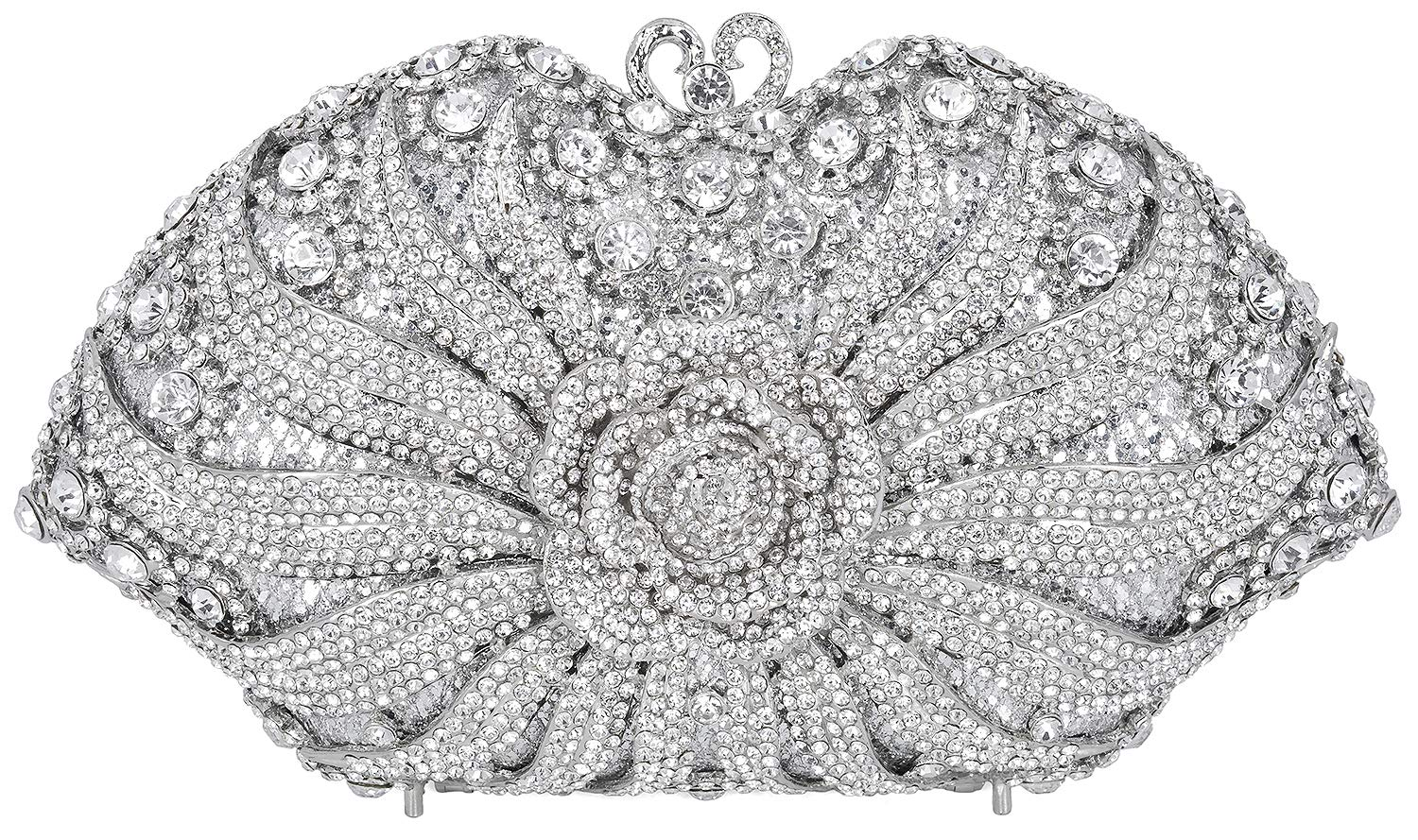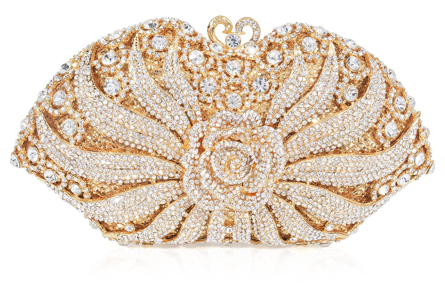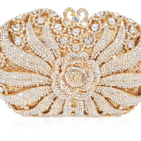 Luxury crystal-embellished evening clutch designed for fashion brands targeting formal events and bridal markets.