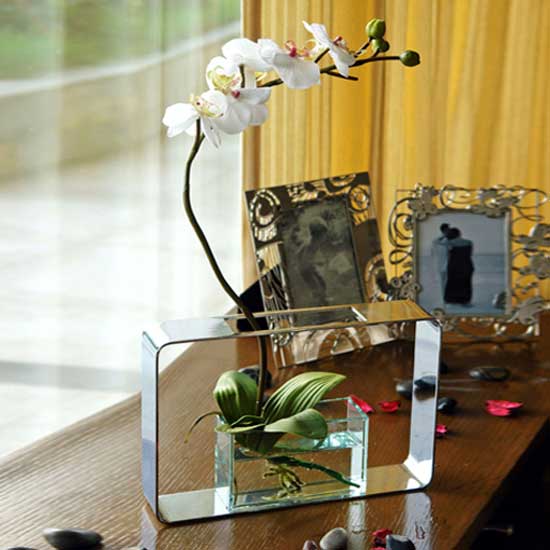 Add a sense of liveliness to your home decor with the featured vase. It has a special design of a rectangular glass box holding water and the root of a flower. The novel vase is sure to bring a touch of uniqueness to your home and office.