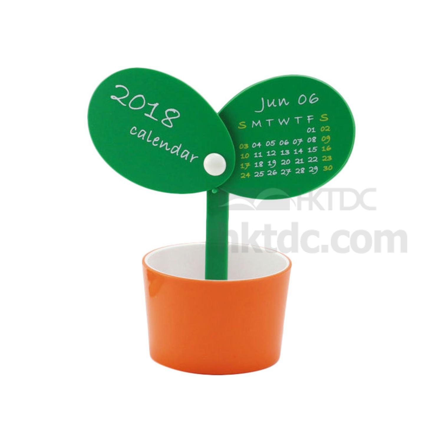 • Novelty table calendar, made of quality plastic in creative bud flowerpot shape, it can be fresh mini desk calendar in your home and office.