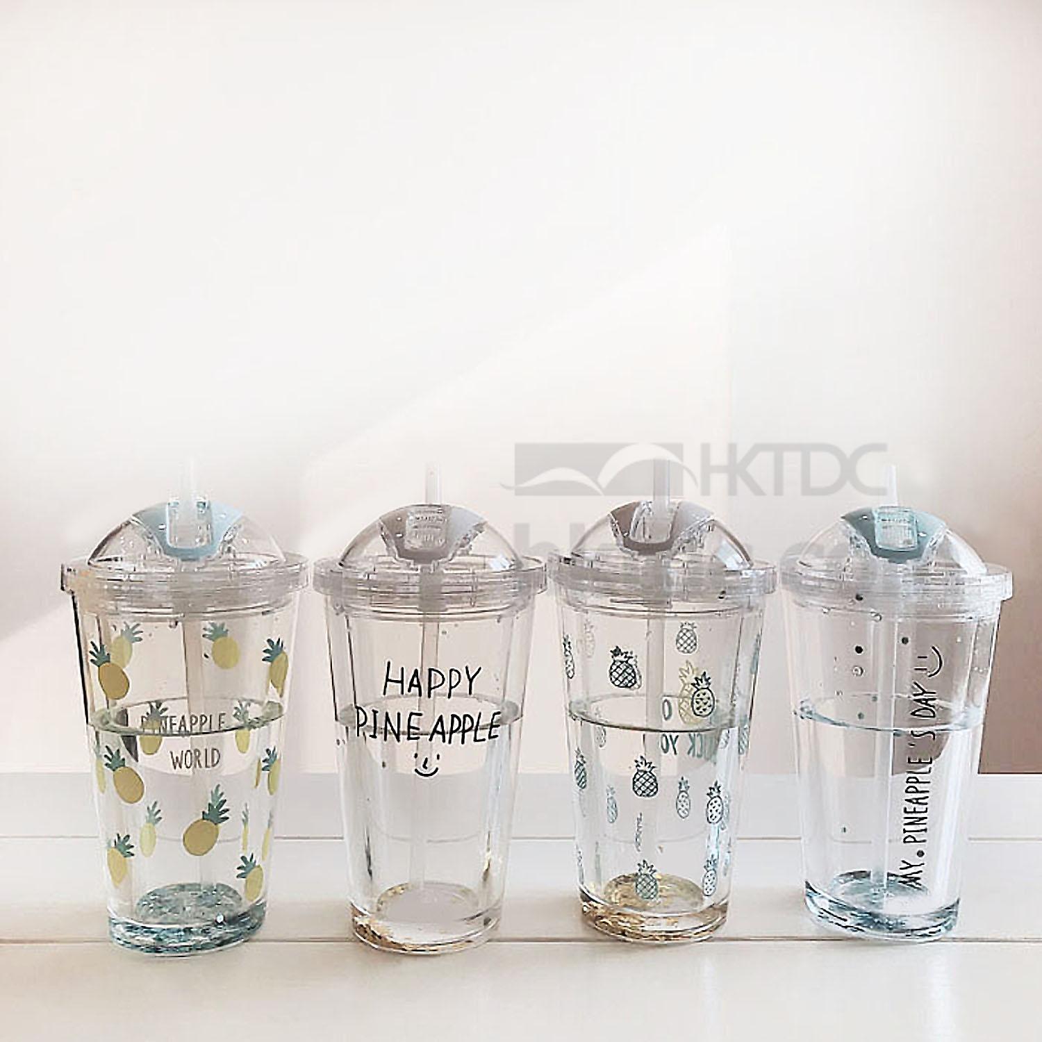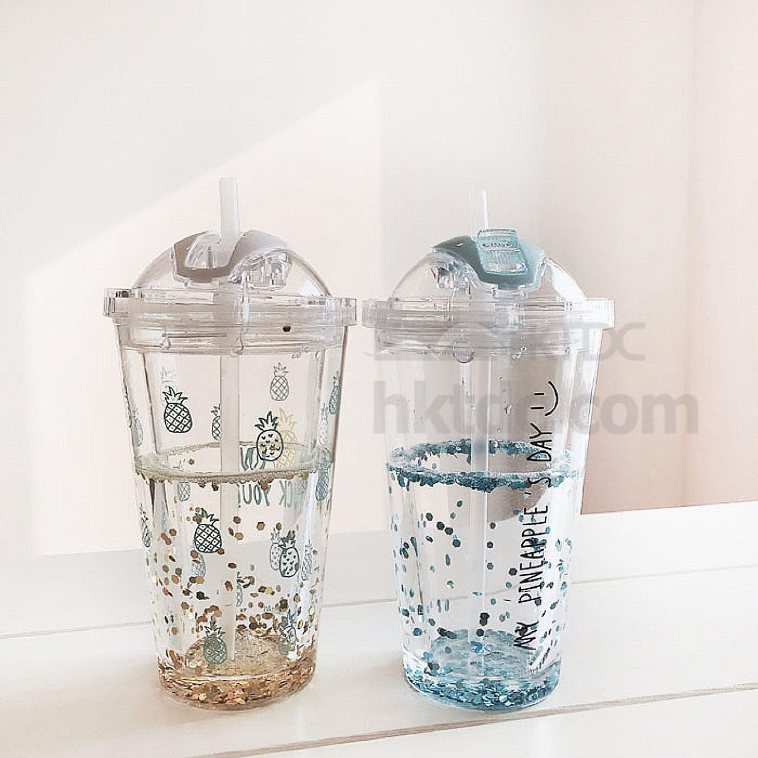 Portable Plastic Transparent Flowing Quicksand Travel Cup Travel Mug with straw