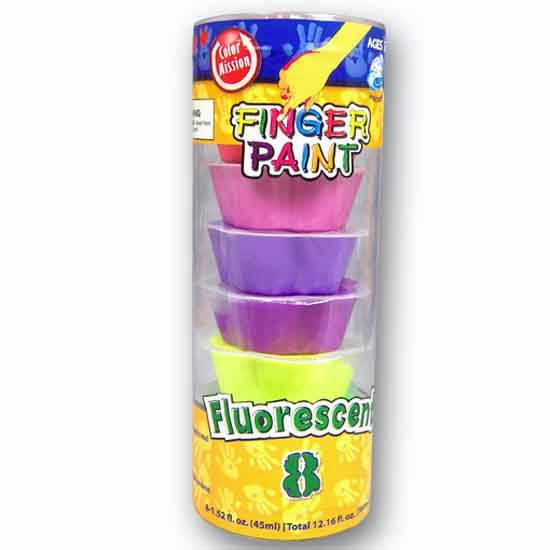This fluorescent finger paint set allows you to brighten up your art piece simply with your fingers. It includes 8 color pots packaged in a clear tube. The paint can be easily cleaned up with warm water.