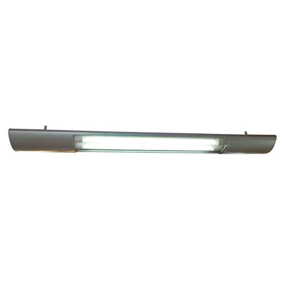 As shown is a fluorescent light fixture with silvery coating. High quality material is used for production. It is to be hanged on ceilings.