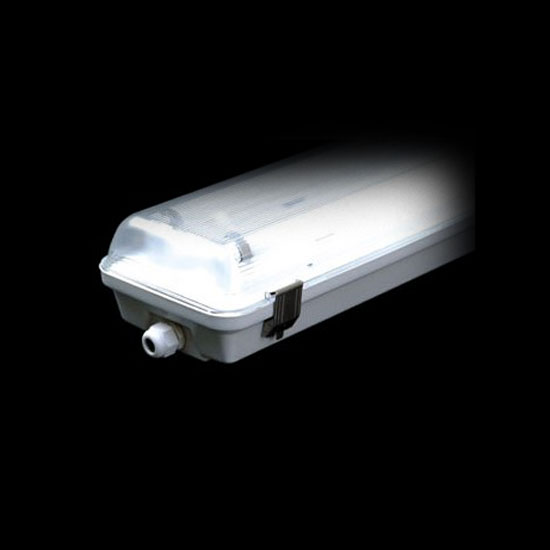 Featured is a fluorescent light fixture with two T8 tubes. It comes with a half-translucent cover to produce smooth and warm light. The waterproof design is particularly great for outdoor applications.
