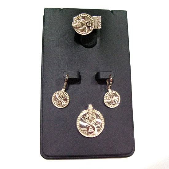 This jewellery set include a bracelet, a pendant and a pair of earrings that are all made of 18K gold. They have round plaque design. They feature fluting details and embossed pattern and words.