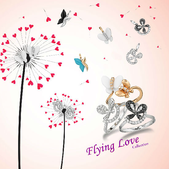 Flying Love collection, butterfly, agate, black agate, white agate, pendant, ring, diamond.