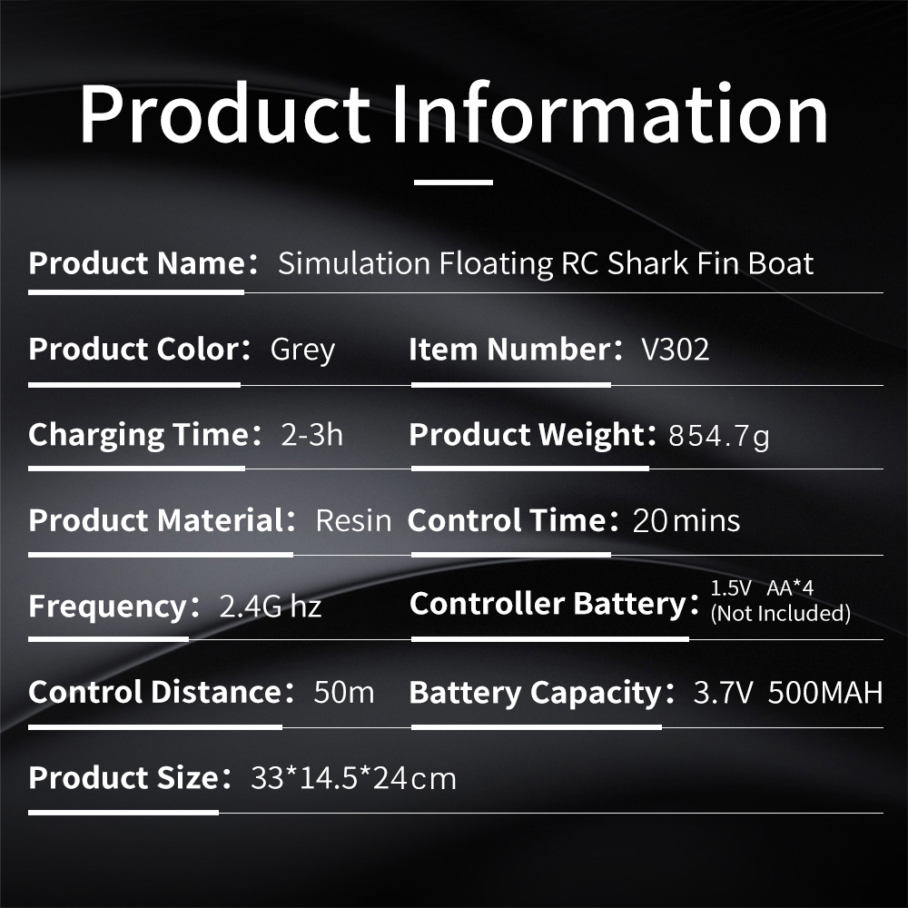 3. Forward, backward,turn left and turn right four channel operation,which simulates the speed and movement of the real shark, and moves freely on the water.