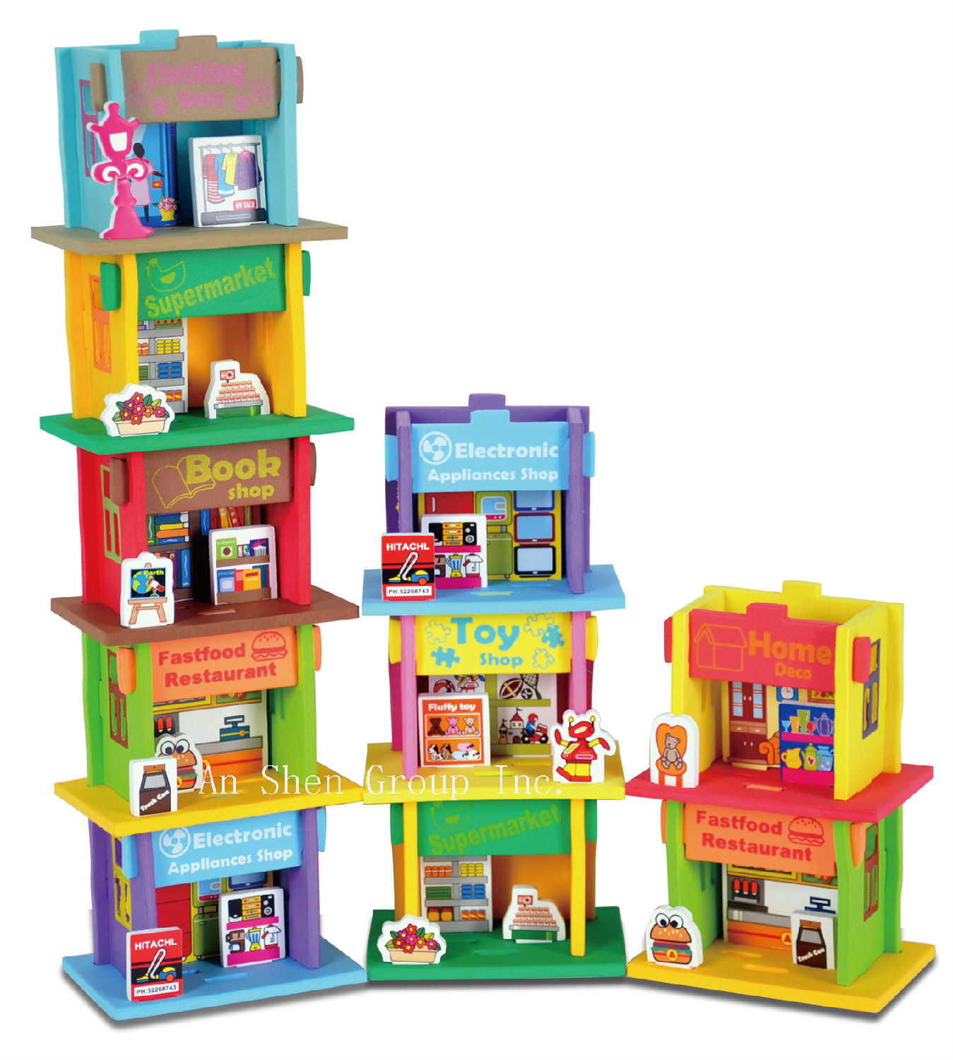 Allow your little ones indulge in the shopping world without bleeding you dry with this fun department store play set. Constructed with light foam pieces, the individual stores can be stacked up to great height to form a versatile department store. Ideal for imaginative pretend play, this toy set brings lots of fun to your kids.