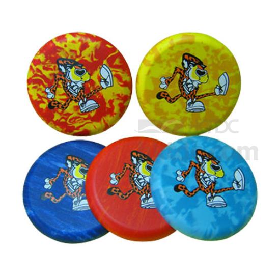 Experience the delightful and remarkable outing with this eye catching flying toy. This toy Frisbee possesses the hot pink and vibrant yellow color scheme in a graffiti design, exquisitely showing off a touch of glamor. It also comes with the customized logo adornments at the center. This adorable toy Frisbee proudly boasts a foam construction for lightweight and enhanced flying speed.