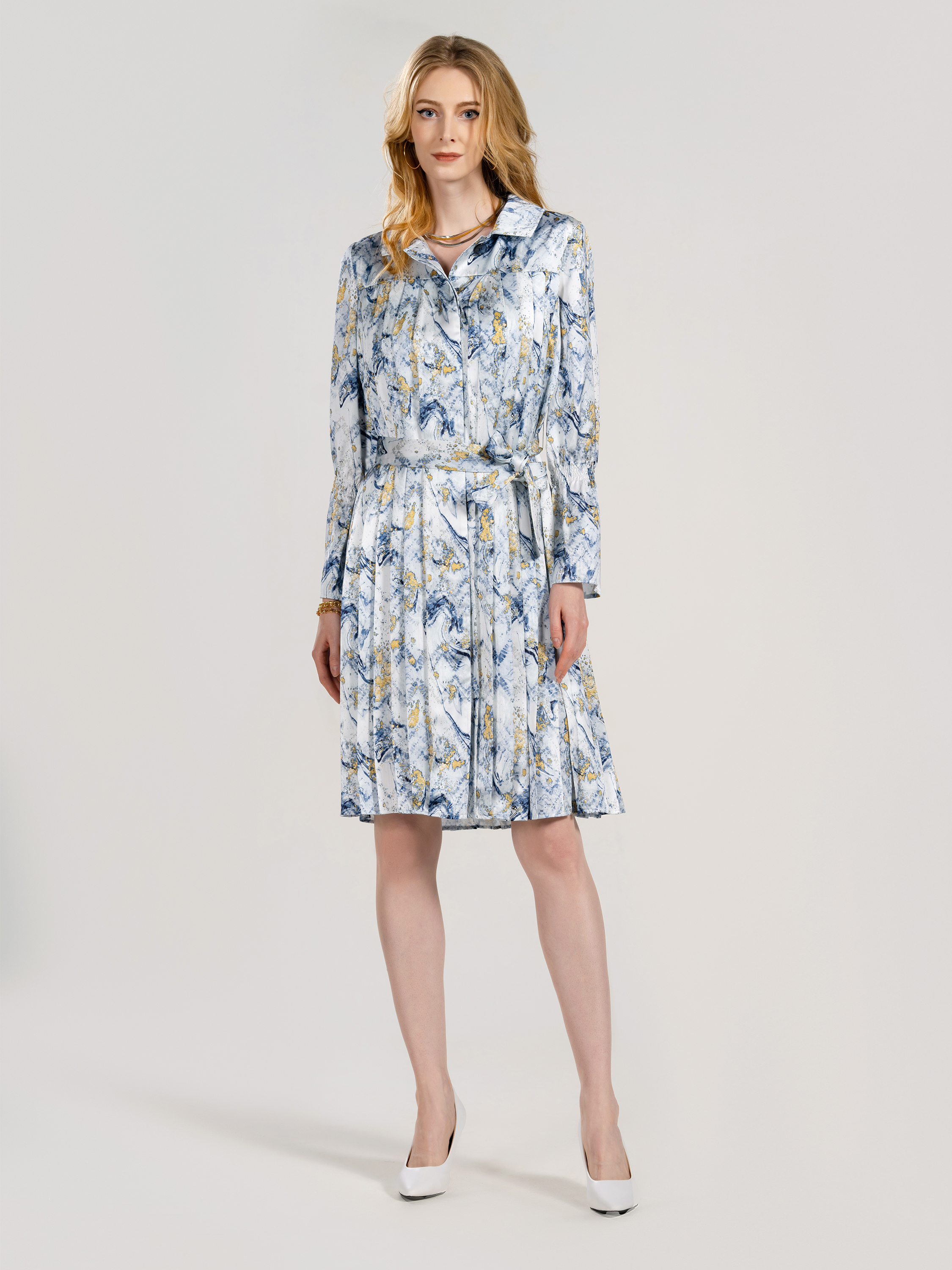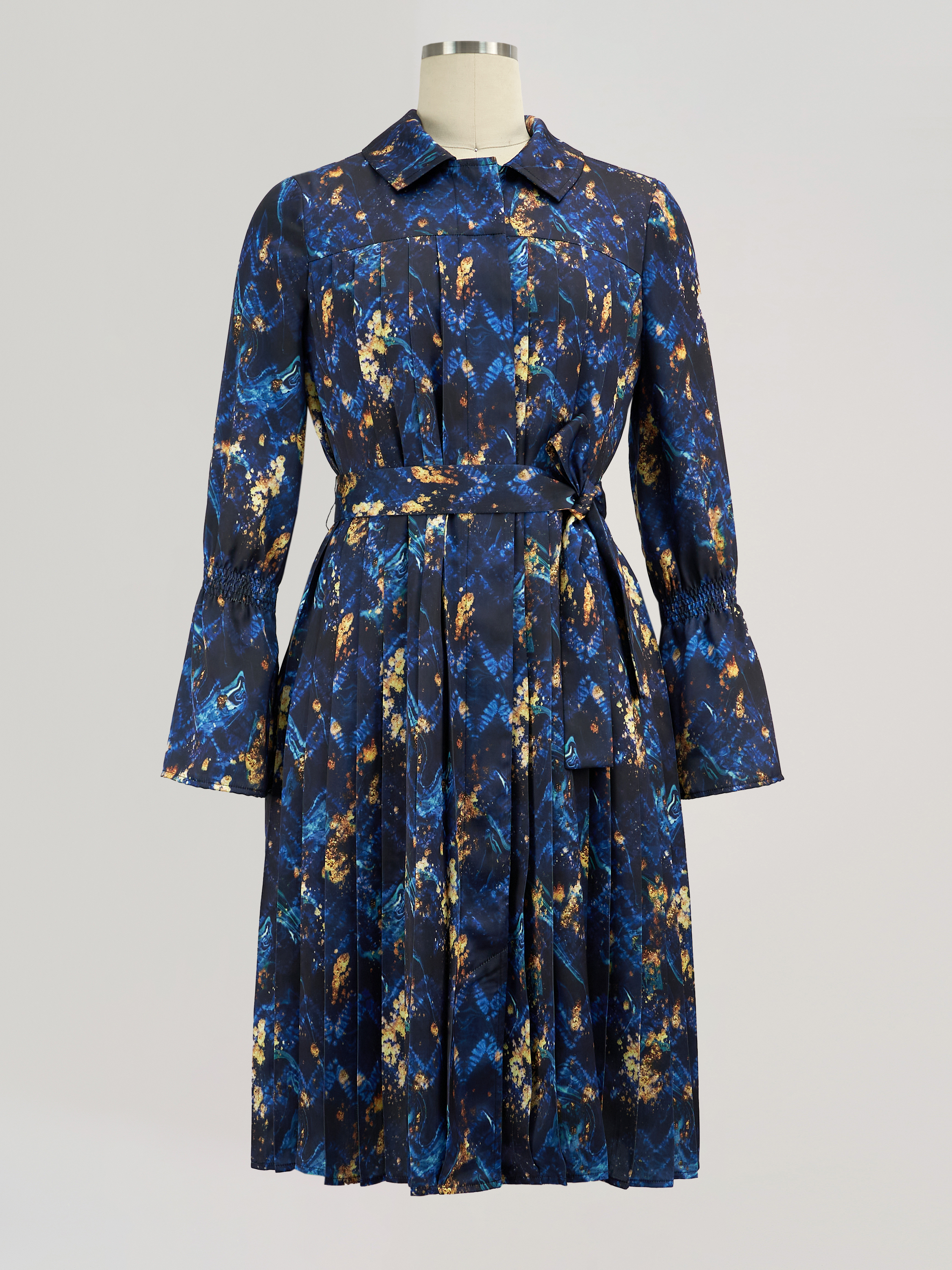 Ladies' 100% Polyester Pleat Dress Printed