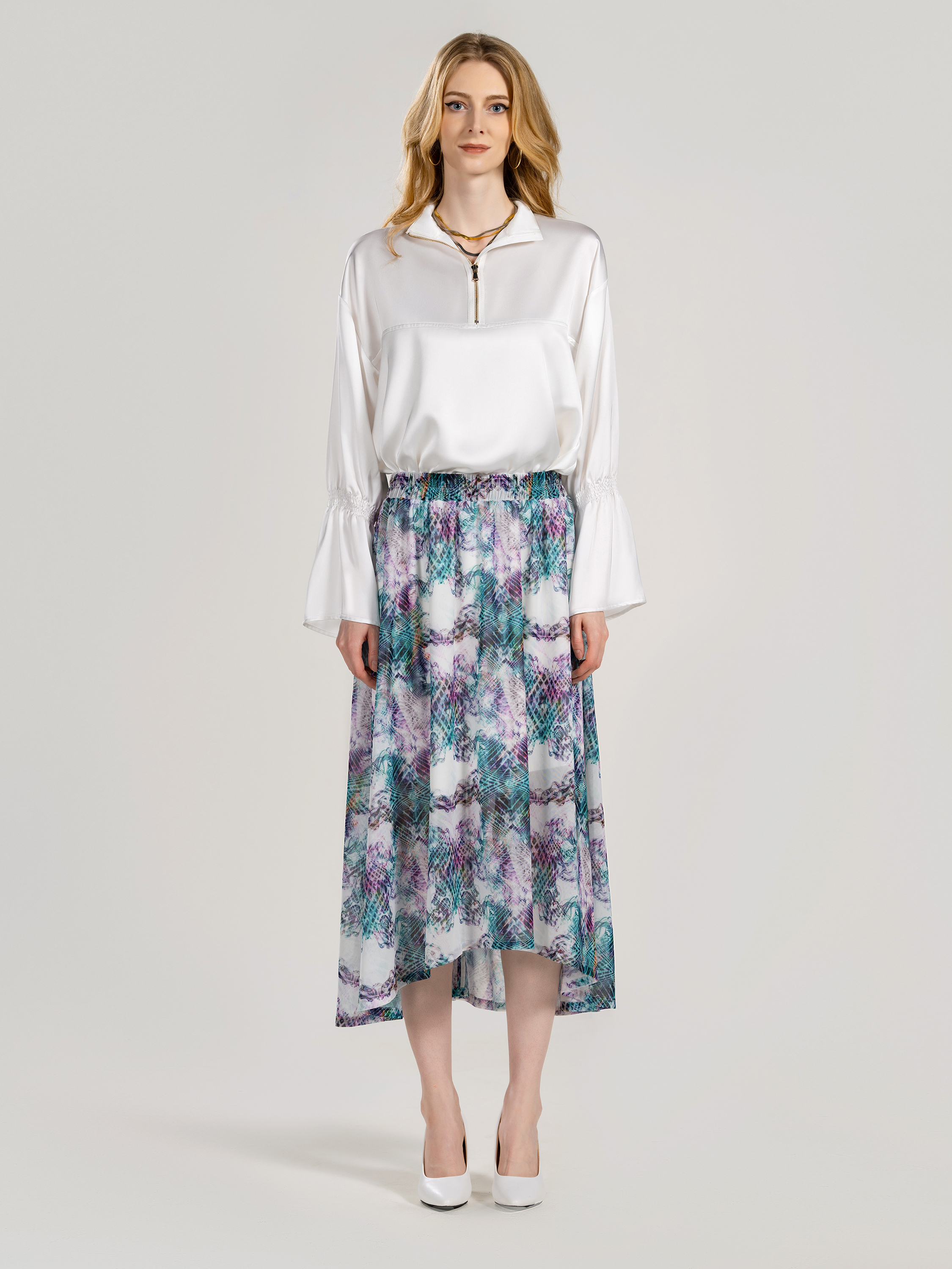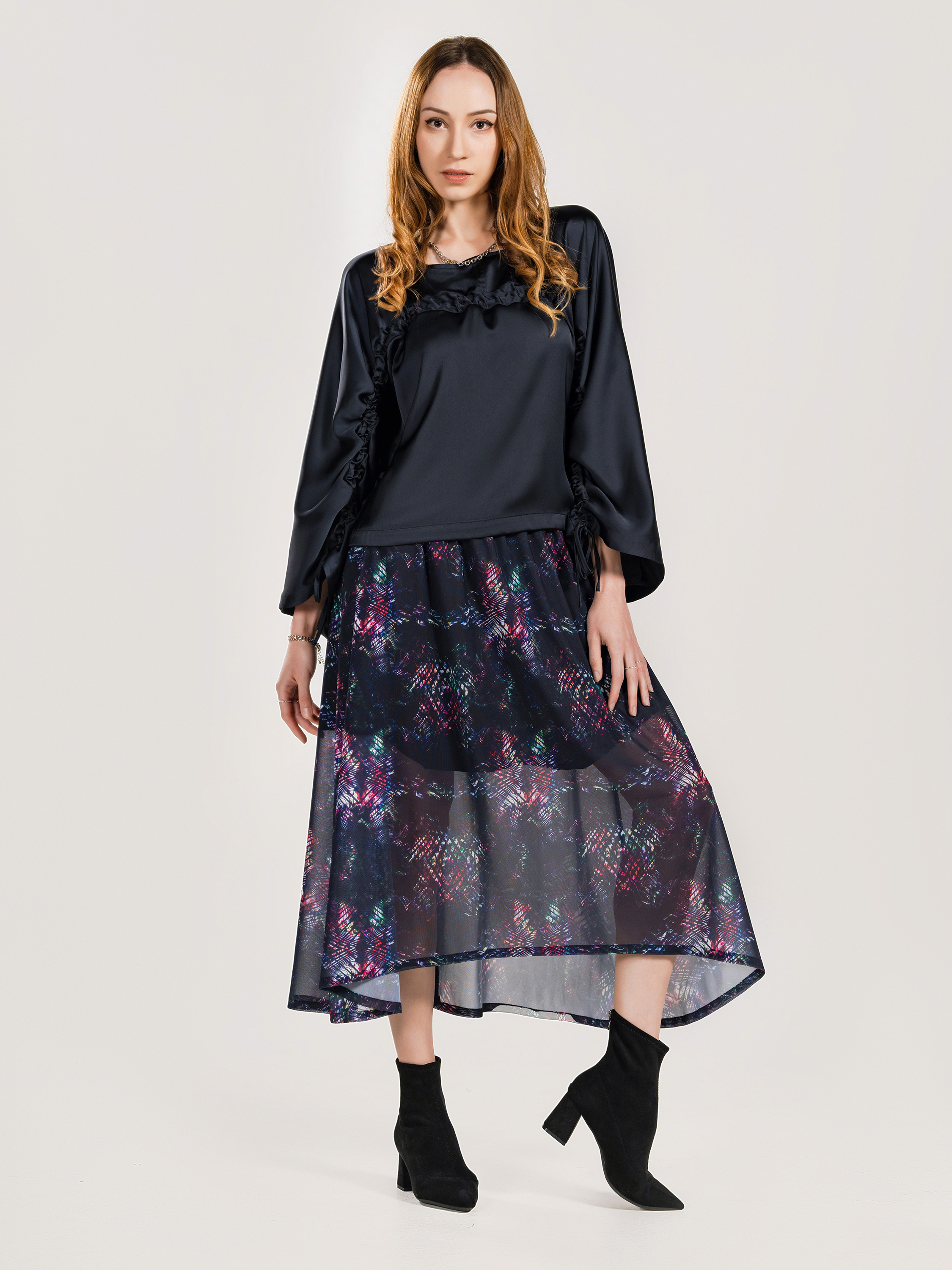 Ladies' 90% Polyester 10% Spandex Printed Mesh Skirt