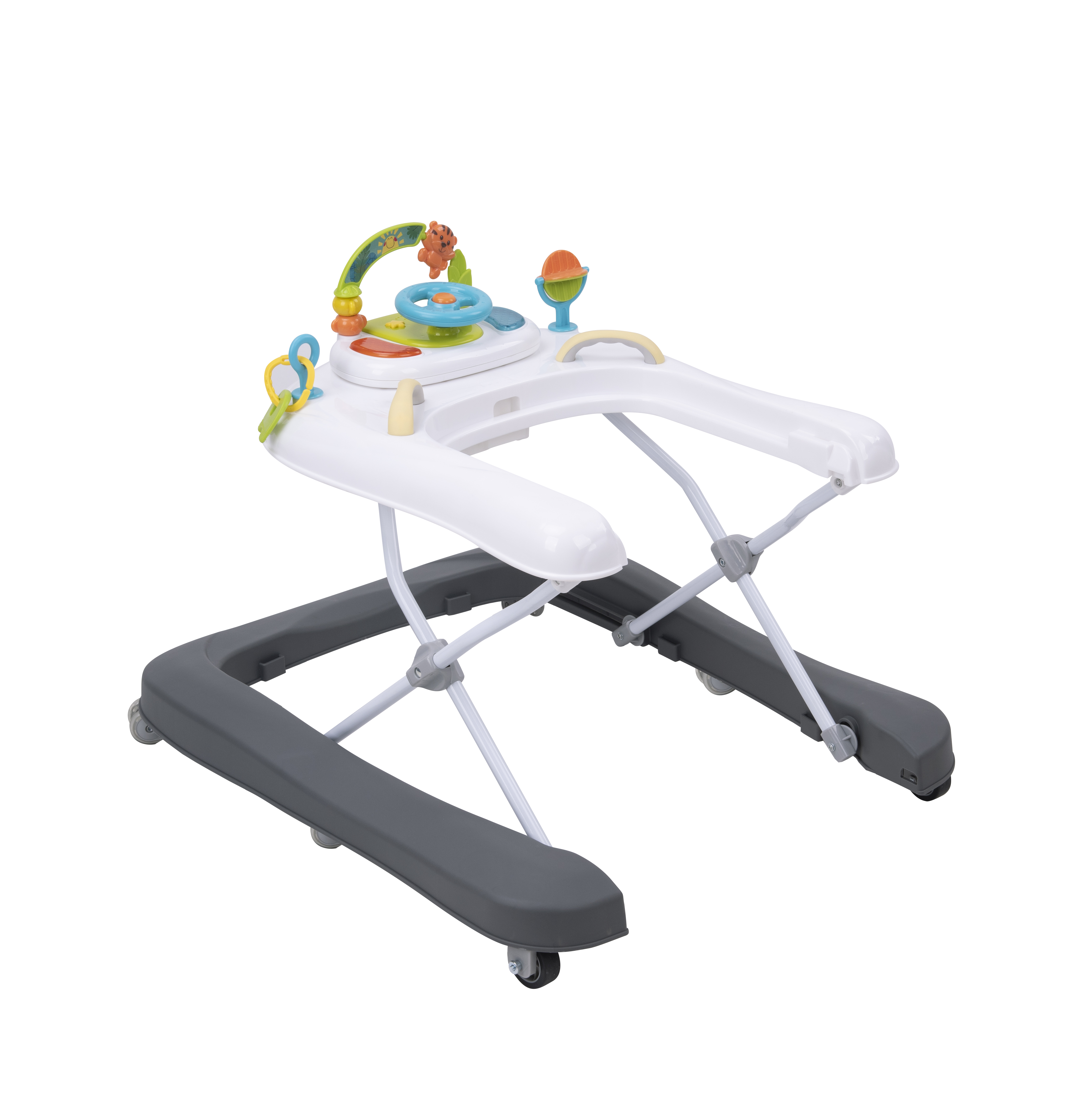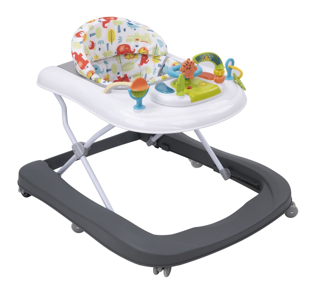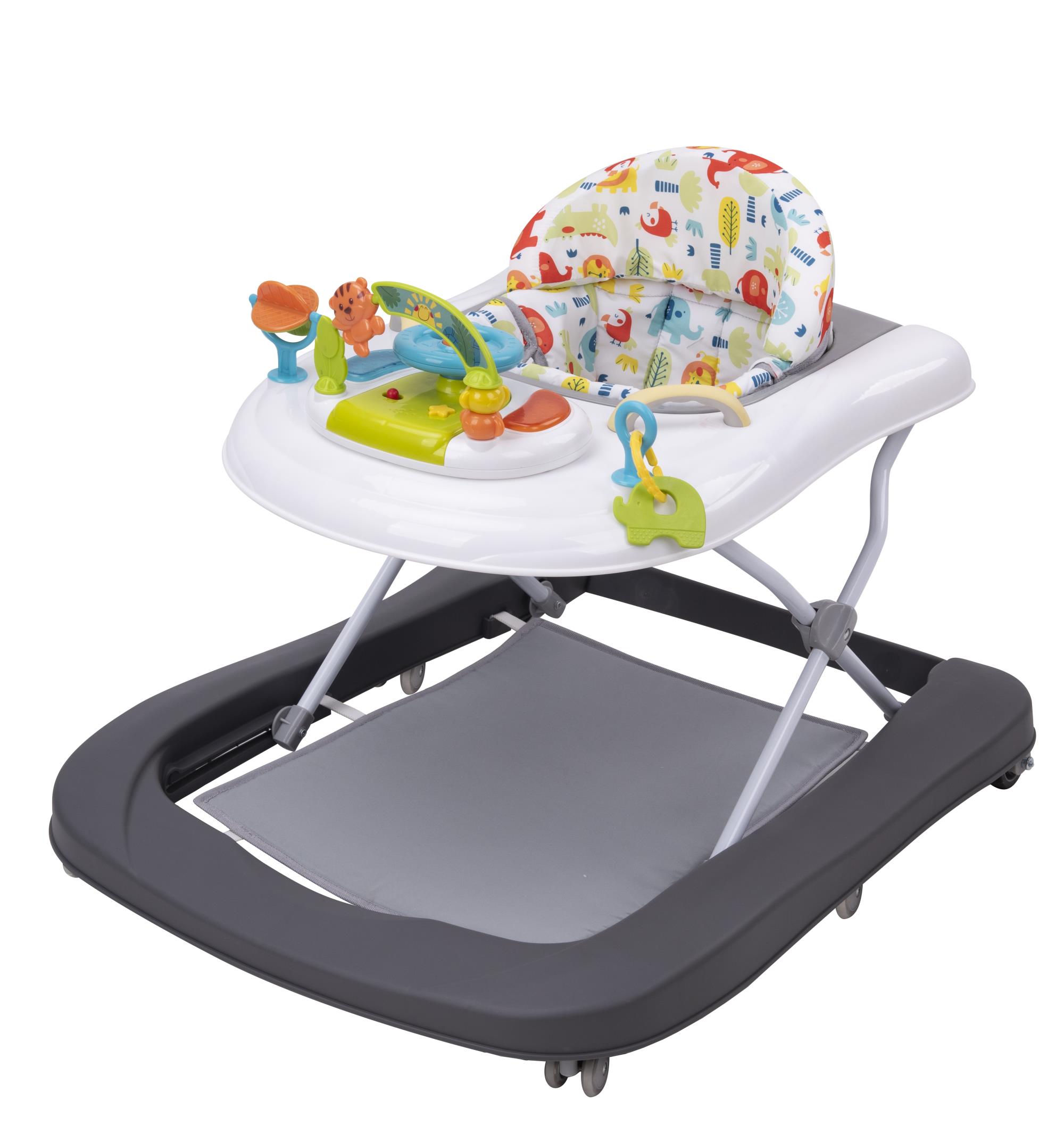 This walker is designed with safety features like soft pads and speed control. It's packed with fun, interactive music, light, and rhythm for sensory development and is easily foldable for storage or travel, ensuring the child's mobility and entertainment wherever they go. Suitable for babies from 6 to 18 months.