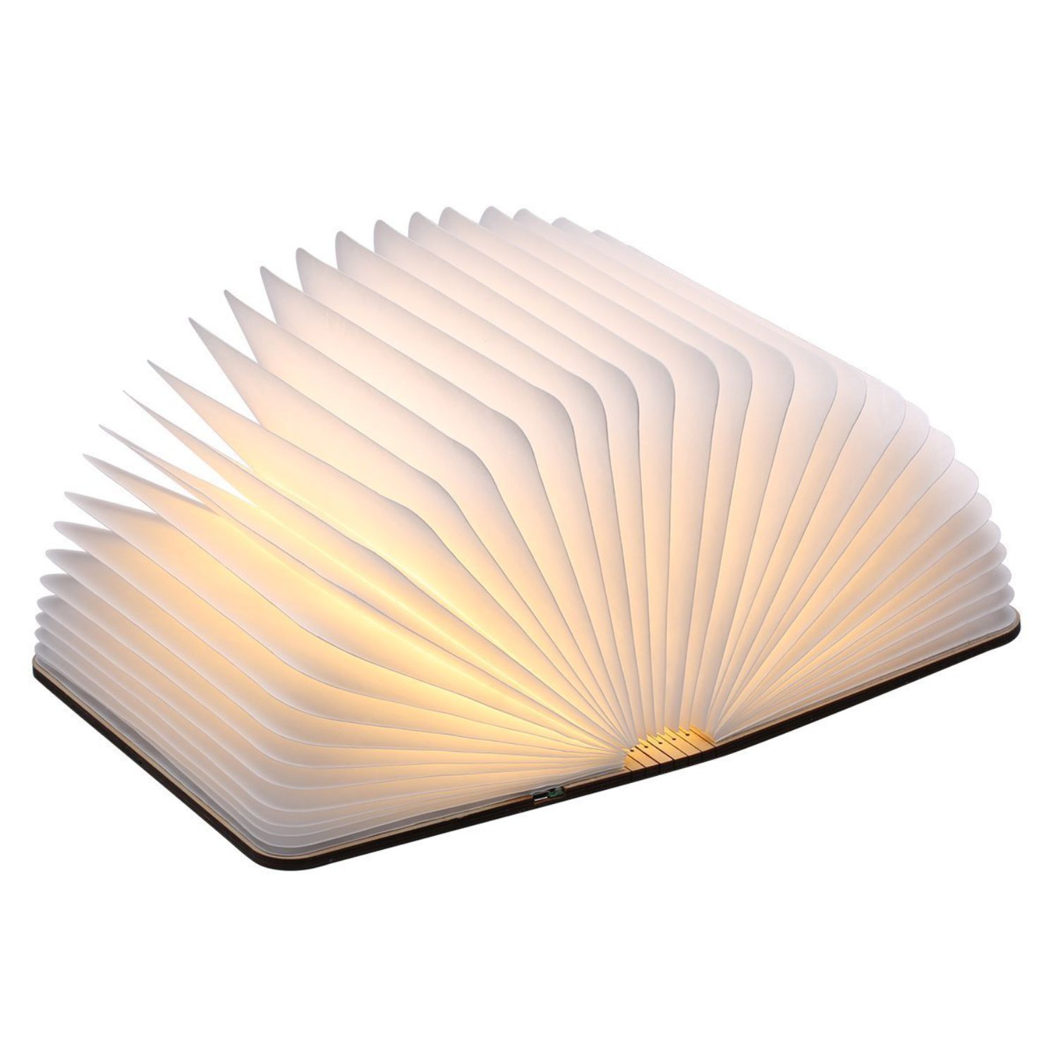 - A LED foldable book lamp that looks like a regular-sized hardback, leather book.