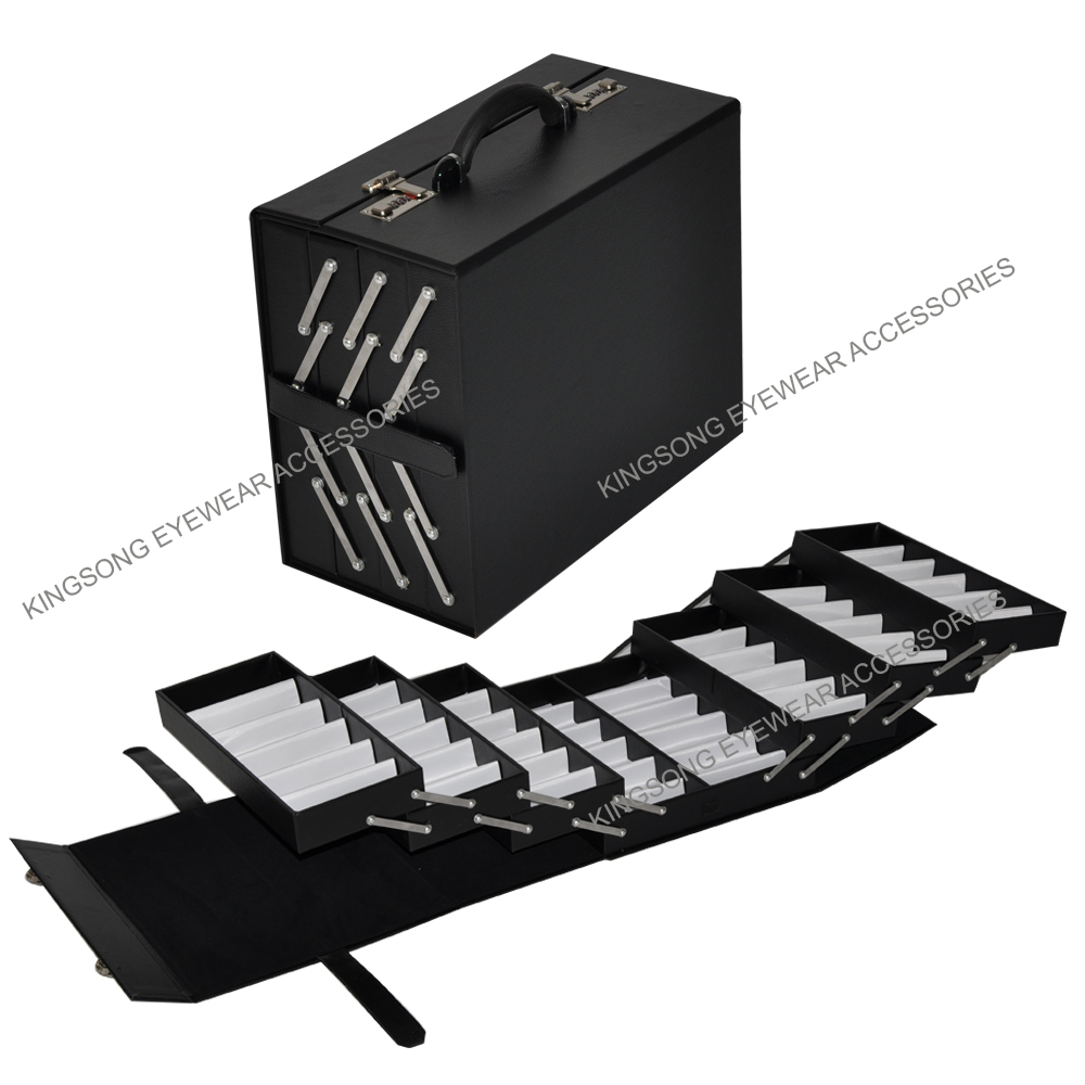 Coded lock Foldable Eyeglass Eyewear sunglasses accordion handhold Suitcase Display extendable brief case Hold 48pcs of glasses