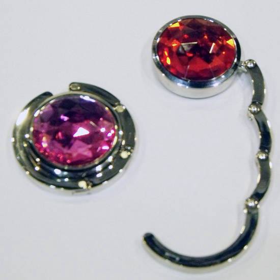 The extravagant bag hook features a round huge crystal with a silvery copper trim. It folds around the hanger head into a compact size for space-saving. The shimmering, vibrant surface brings a glamorous, frisky image. This hook is a must-have accessory that will keep your handbag safe, clean and off-the-floor wherever you go.