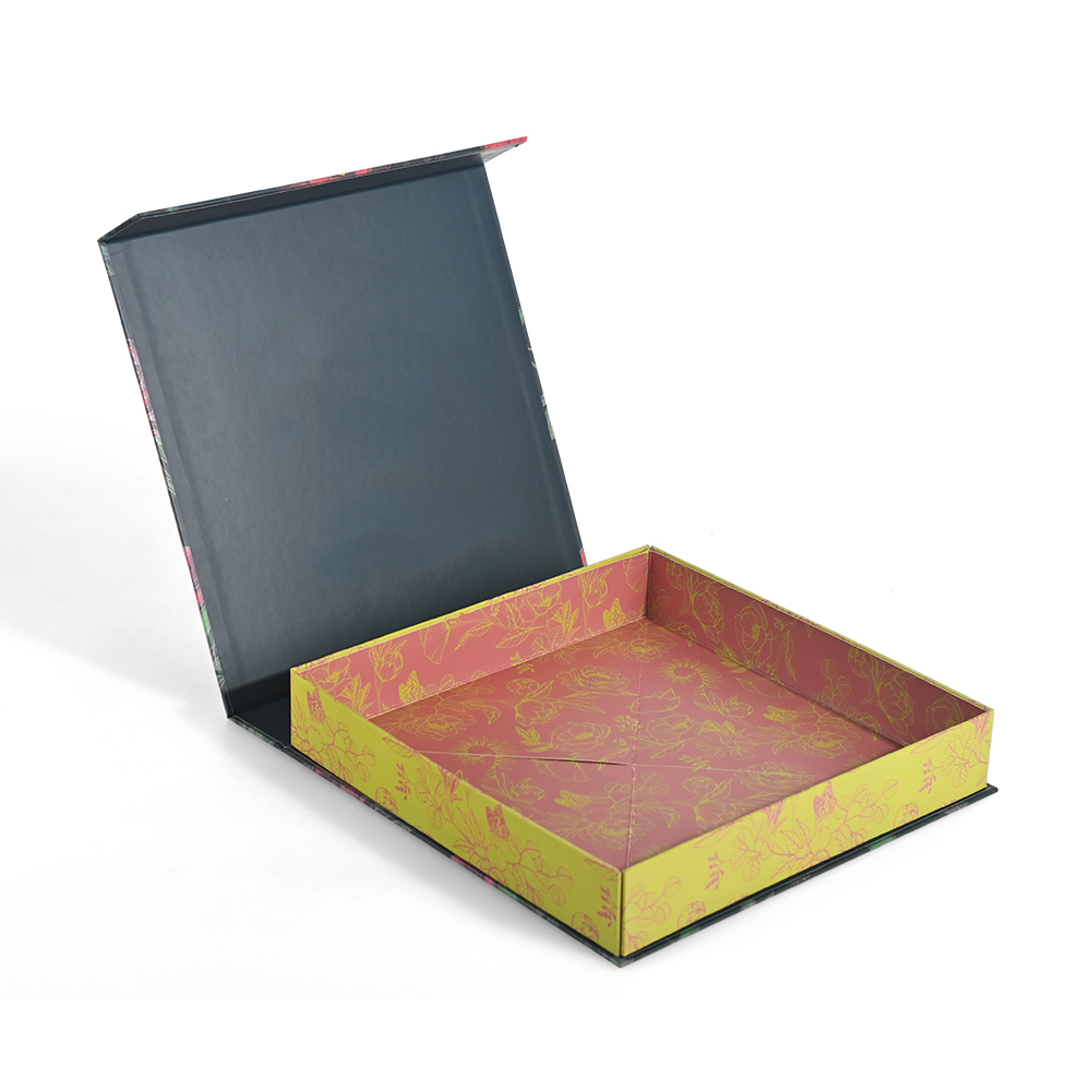 Our personalized foldable magnetic closure box with its robust foldable structure and colorful floral design, may enhance the way your gift is presented. This box, which is made of high-quality firm cardboard, blends style and functionality. The magnetic closing guarantees safe storage, and the collapsible shape conserves room when being transported. Perfect for high-end presents, makeup, or packaging for special occasions, it elevates any occasion.
