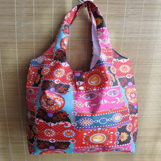 This polyester bag entices you with its flamboyant and colorful print. The polyester material boasts extraordinary strength and durability. Featuring a foldable design with a small snap closure, this bag is convenient to use.