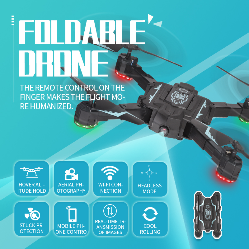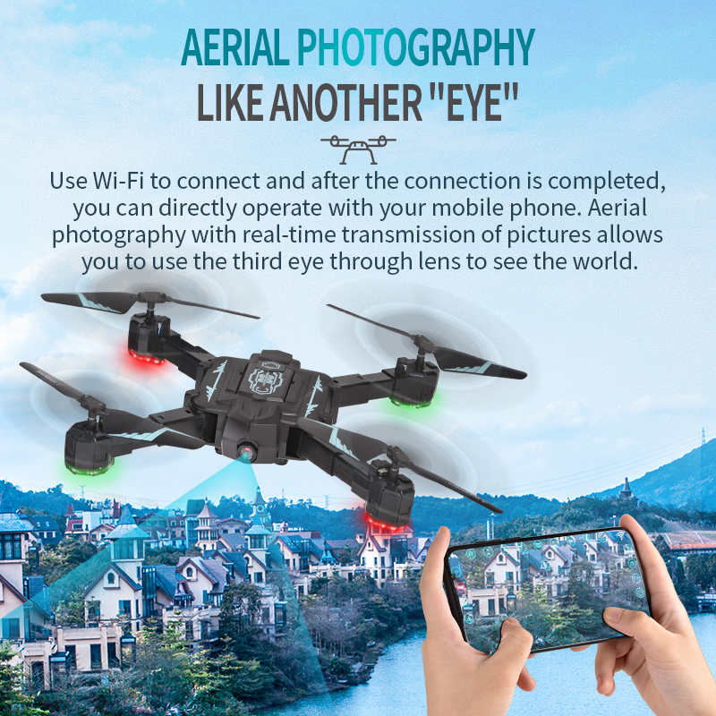 See the world from the sky with this aerial photography drone. It comes in a foldable design and is equipped with a camera for taking photos and videos. This foldable drone has lights for indicating direction and offers smooth and stable flying performance.
