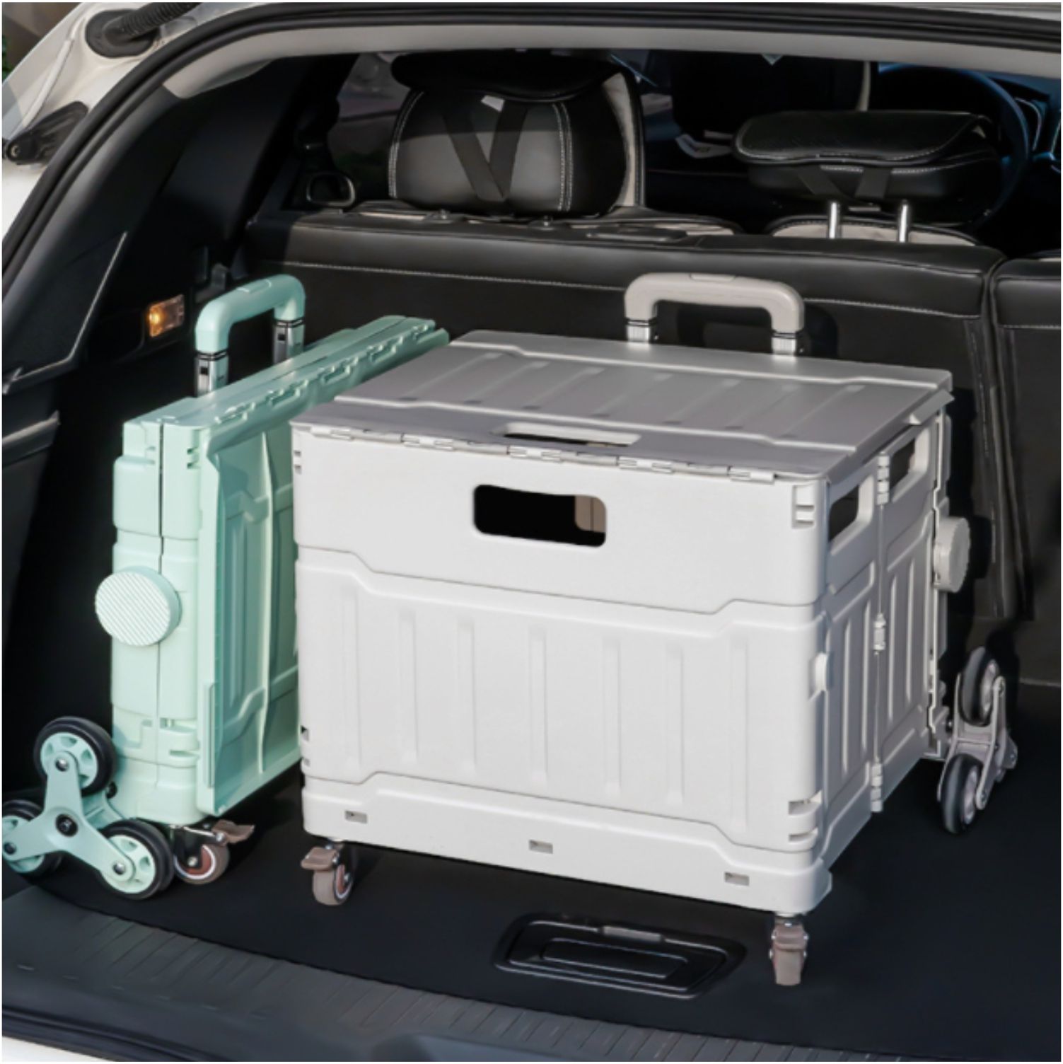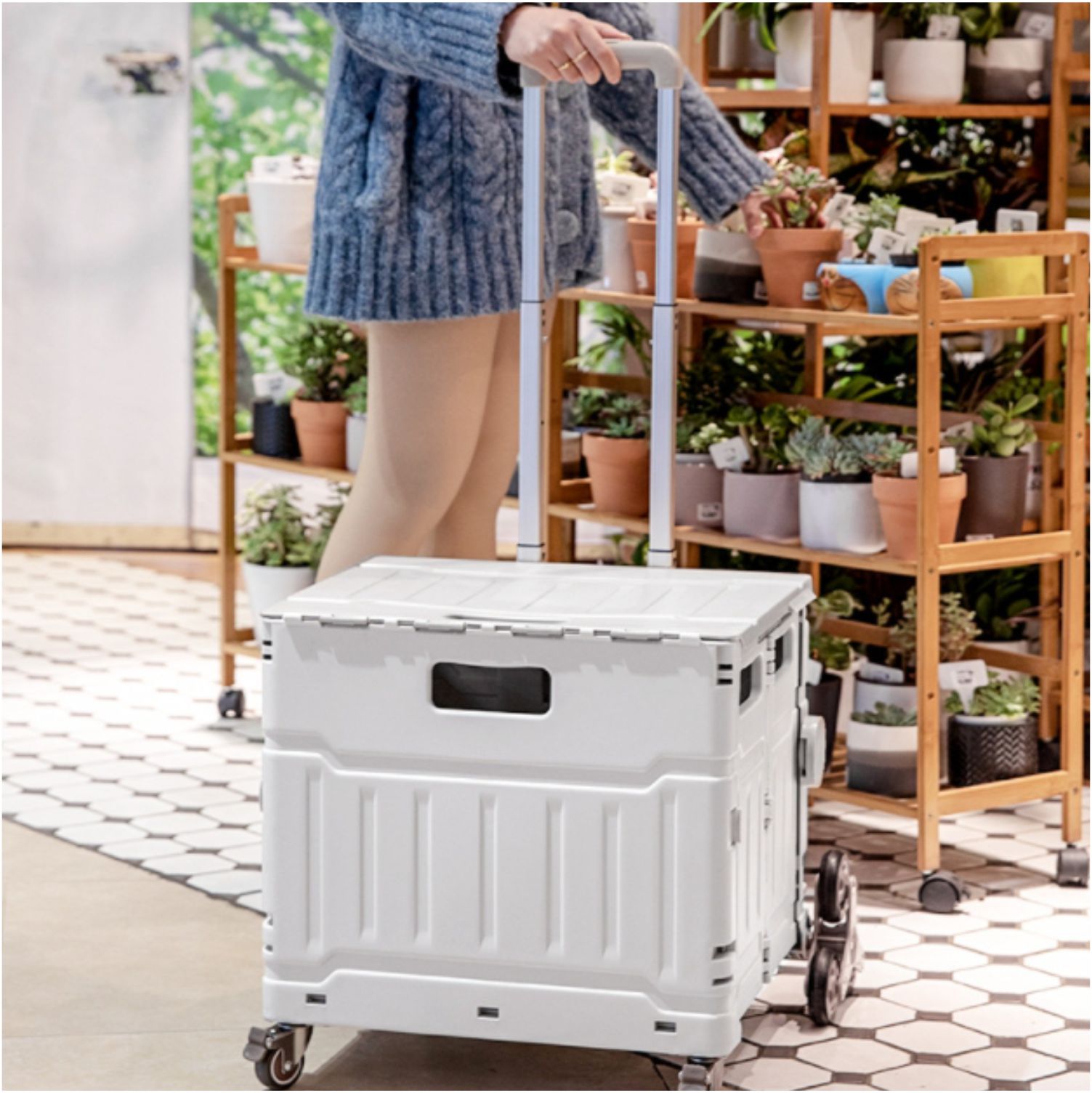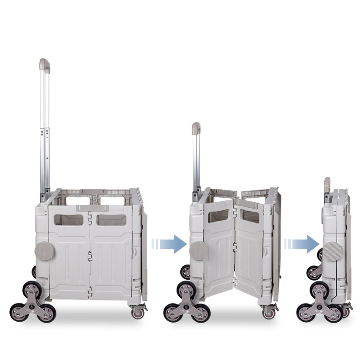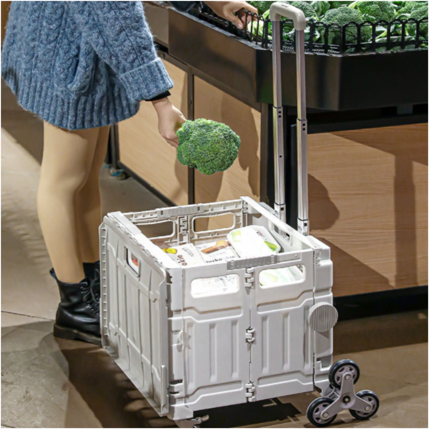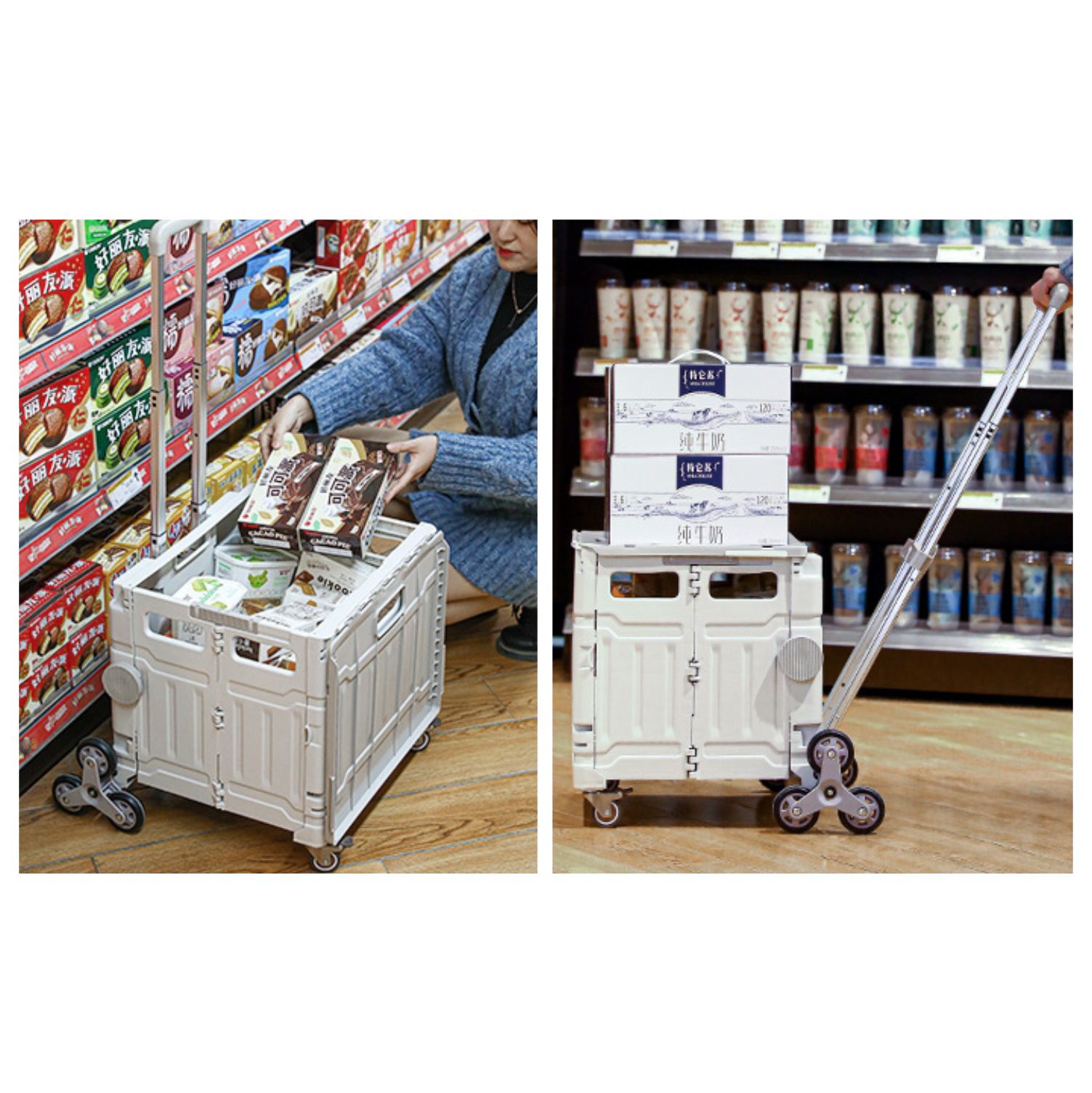 EASY TO FOLD AND STORAGE : This collapsible shopping cart is lightweight but has a very solid construction. It can fold easily down to only 4 inch thick and weighs 7 pounds, compact and lightweight, saving more space. You can carry it by hand or in your backpack, car trunks and unfold it whenever used, very convenient.