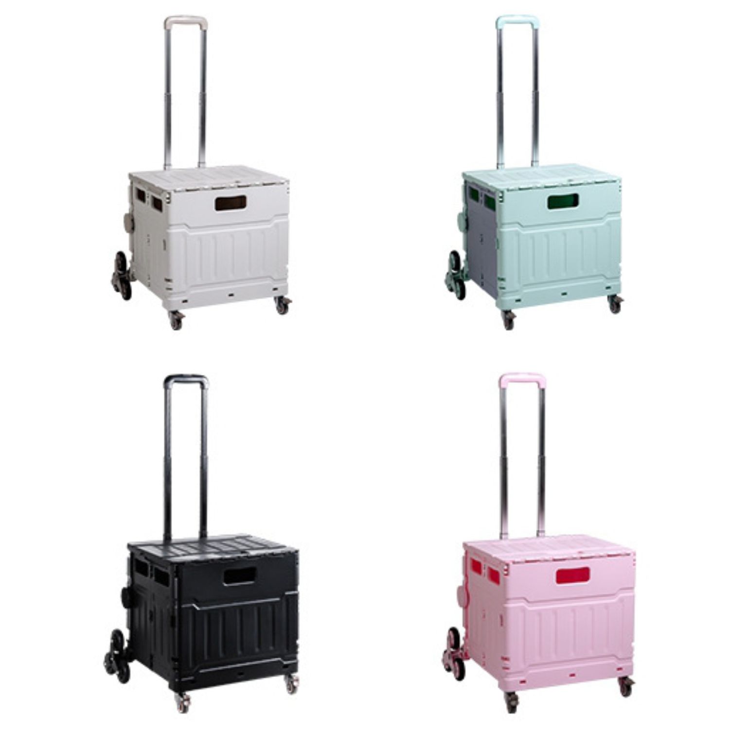 STAIR CLIMBING DESIGH : Our rear wheel is designed with three swivel wheels for easy to climb stairs, you can easily up-down stairs with no noise, more labour saving. Just press the button to stretch the handle smoothly, it can extend to 36" high and locks in place. Tall people don't have to bend to pull the cart.