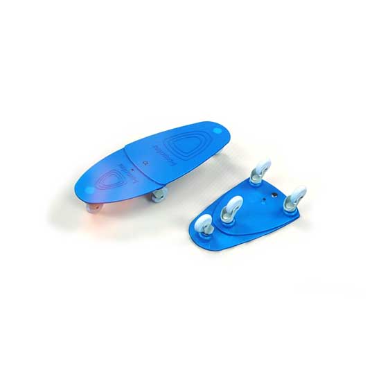 This eye-catching skateboard in blue features a folding design for easy carrying. It is fitted with a sturdy board and reliable wheels for safety. This easy-to-learn skateboard is sure to bring you much fun.
