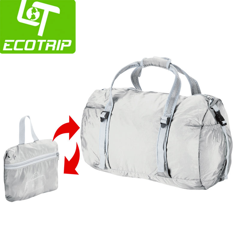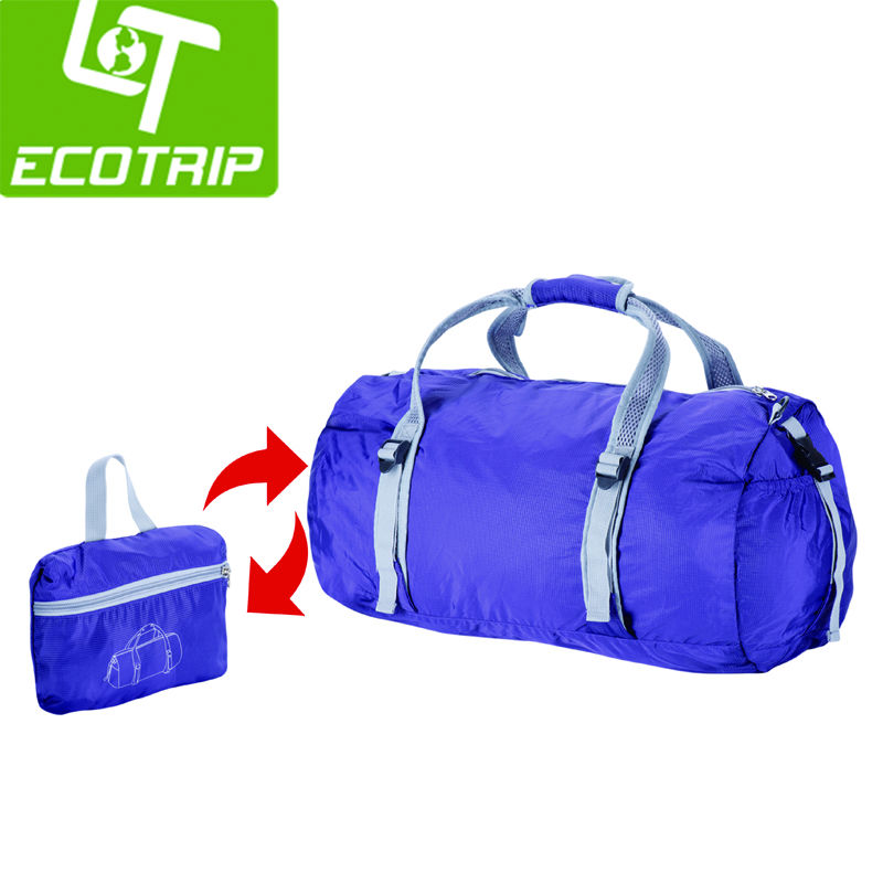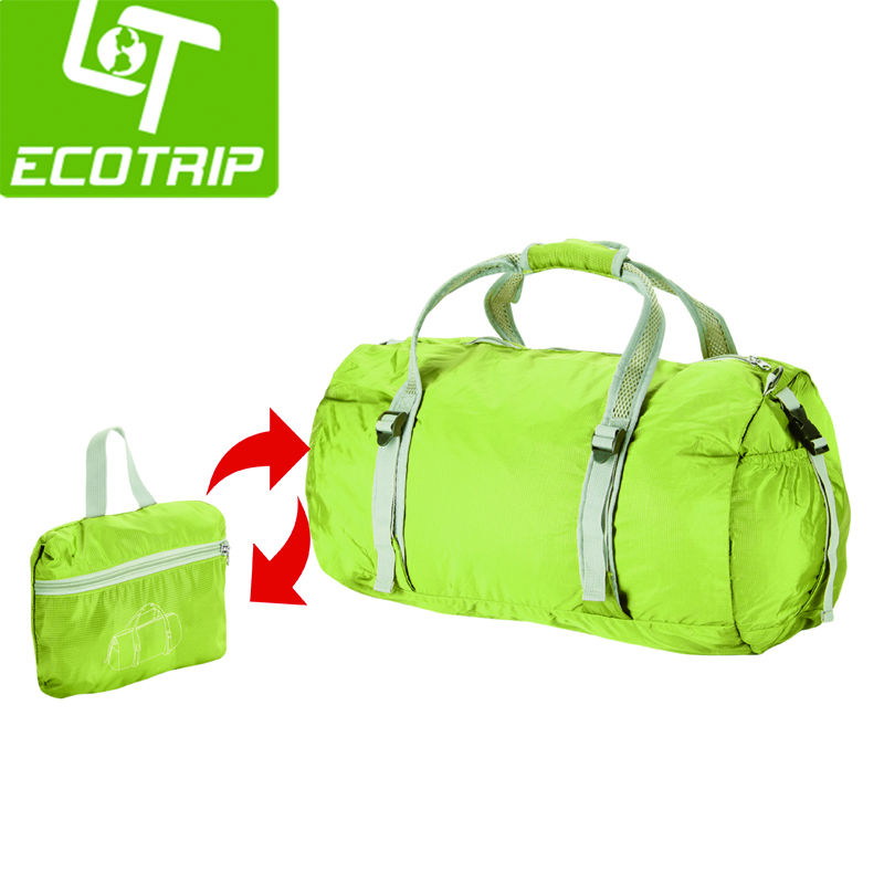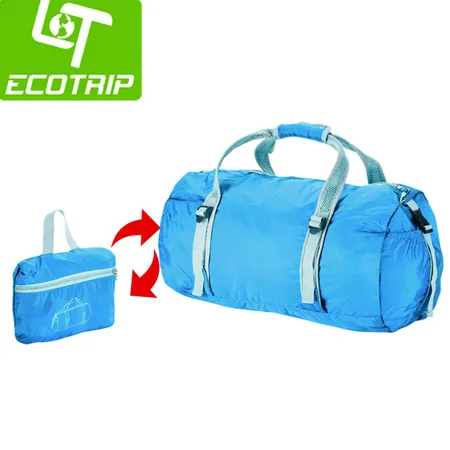 This travel bag is made of 75D nylon fabric and is perfect for hiking, camping, daytrips or traveling. It offers a spacious compartment for storage and has two strong, adjustable nylon handles for carrying. The travel bag comes in a foldable design and can be easily folded into a pouch when not in use.