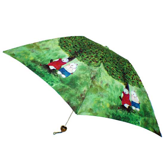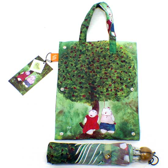 This featured umbrella comes with a convenient foldable design. It is printed with an artistic, refreshing image of a couple sitting under an apple tree. The umbrella also comes with an umbrella bag and a tote bag of matching designs.
