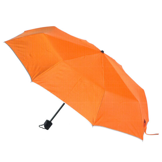 This is a high-quality umbrella with a foldable design. It is made of top-grade polyester and steel for durability. This foldable umbrella is designed in bright orange for an eye-catching look.