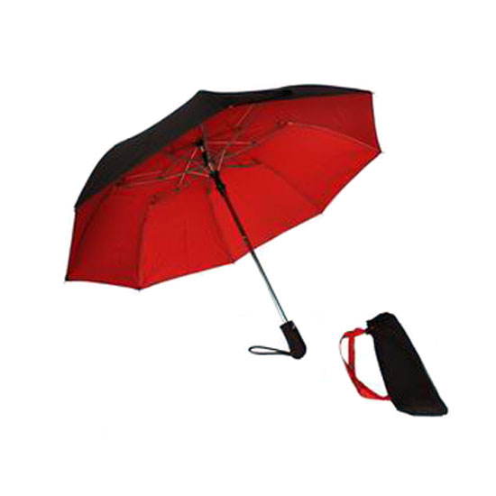 This is a 2-folding umbrella that comes in a bright red color. It can be folded into a compact size and stored inside a drawstring bag for good portability. This solidly built umbrella promises a long service life.